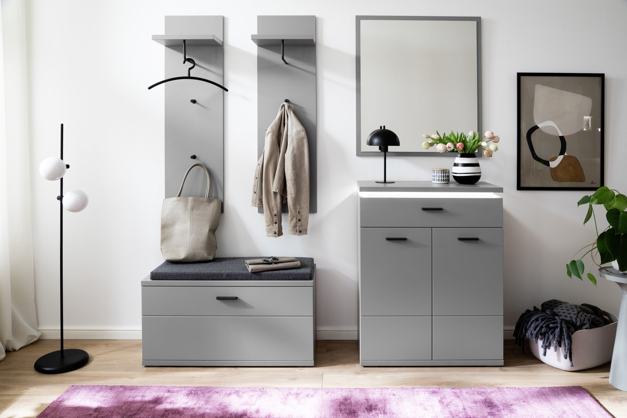 - 2 Paneele / 2 Hutablagen / 2 Kleiderstangen / 4 Haken