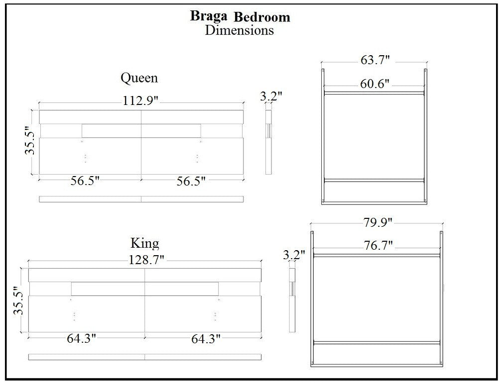 | King Size | Breite 129″ Tiefe 83.9″ Höhe 35.6″ |