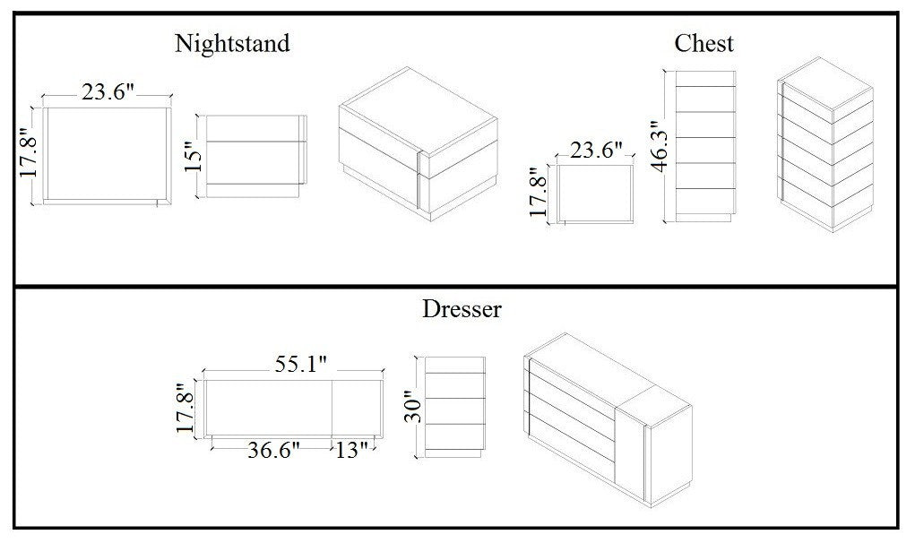 | Dresser | Breite 55.1″ Tiefe 17.8″ Höhe 28.3″ |
