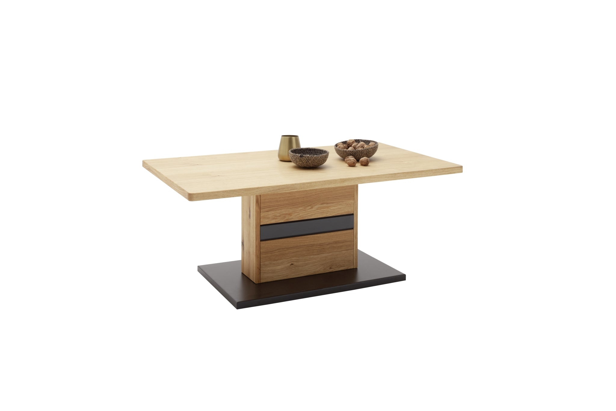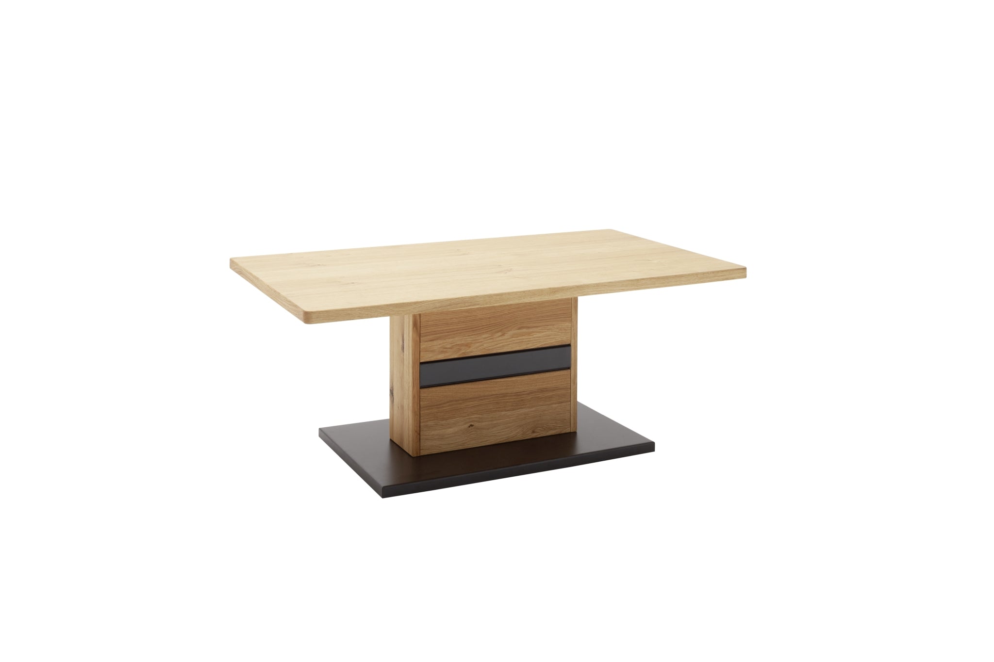 - Tischsäule & Zarge: Wildeiche massiv durchgehende Lamelle, Oberfläche geölt