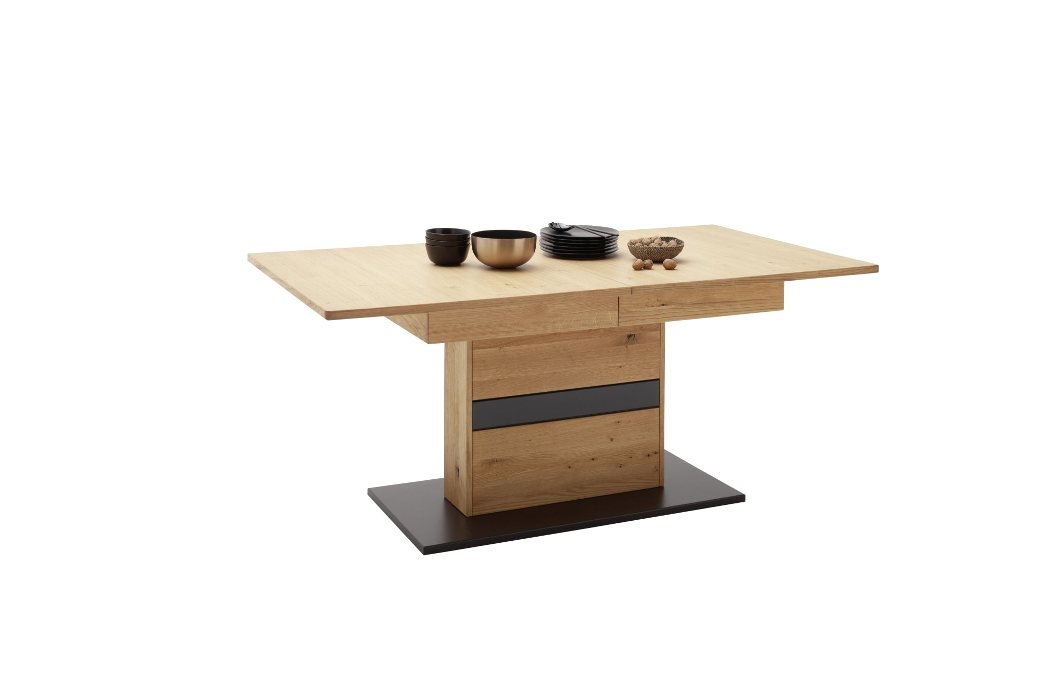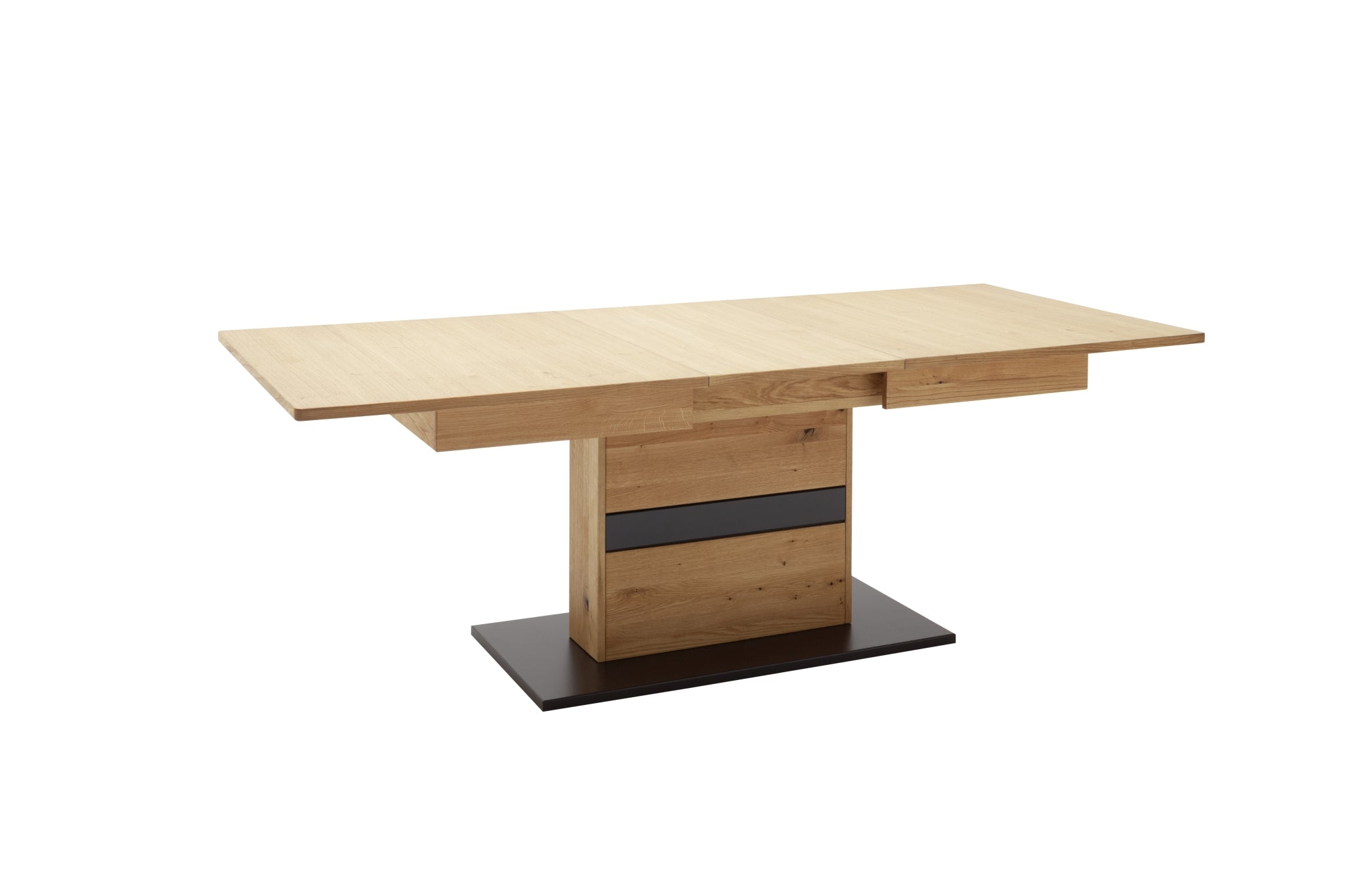 - Tischsäule & Zarge: Wildeiche massiv durchgehende Lamelle, Oberfläche geölt