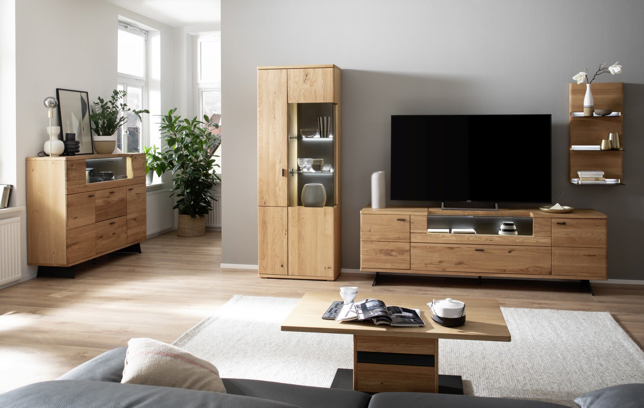 - Korpus: Wildeiche furniert, Oberfläche geölt