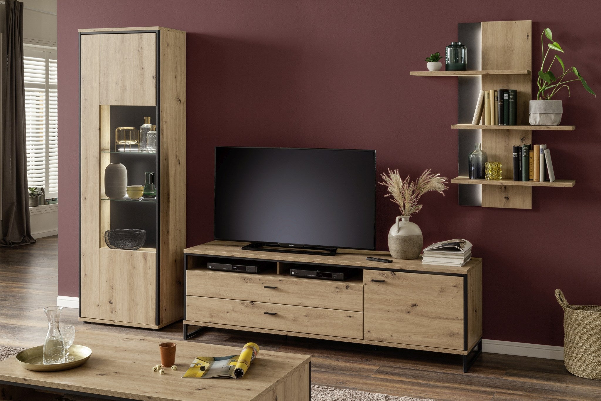 - Korpus: Wildeiche massiv durchgehende Lamelle, Oberfläche geölt