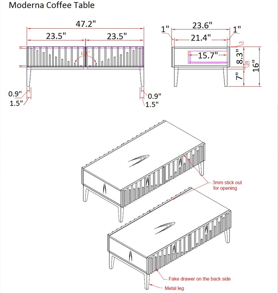 - Abmessungen – Sideboard: Breite 71″ x Tiefe 18″ x Höhe 31″