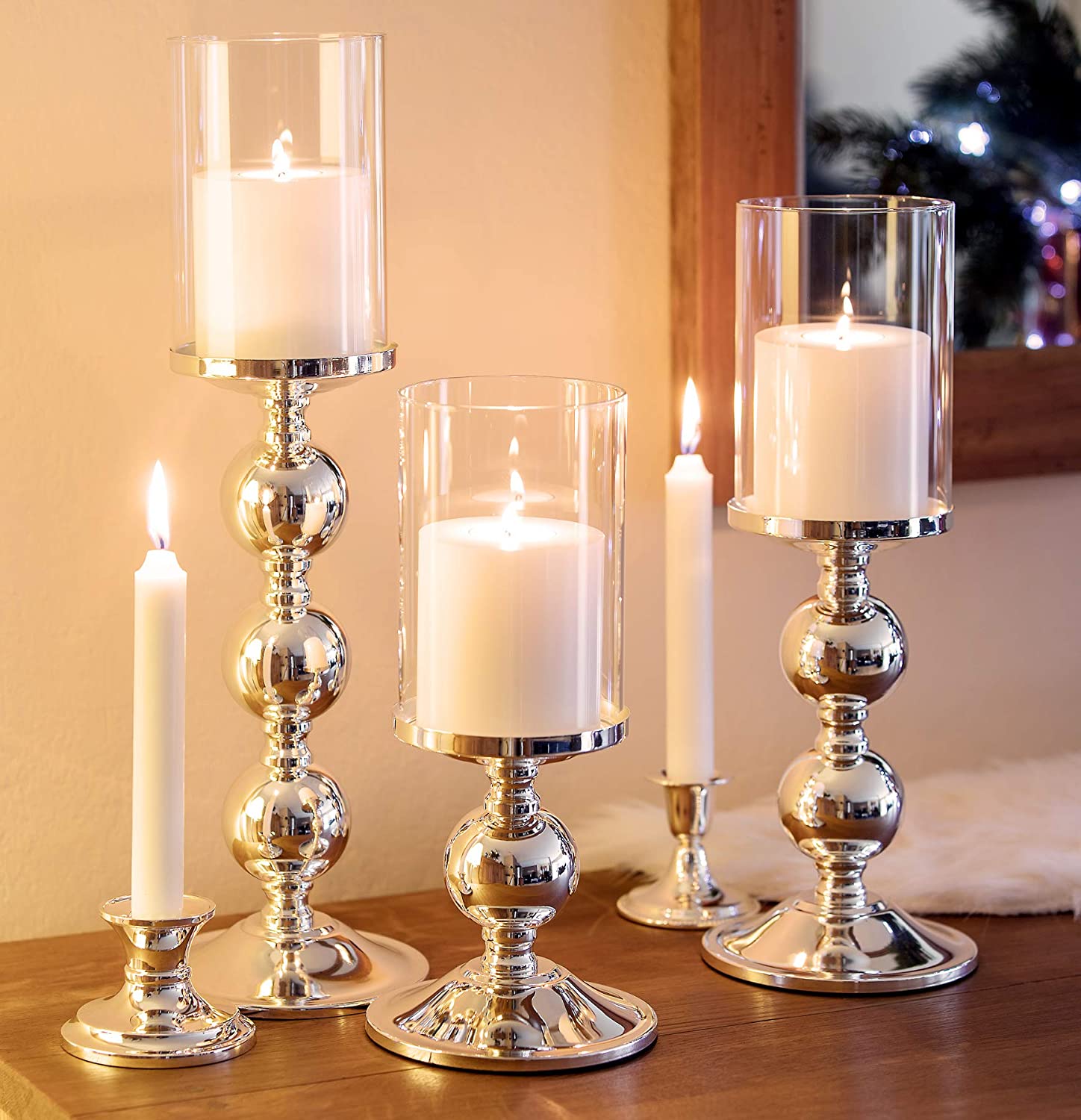 Verleihen Sie Ihrem Zuhause mit dem zeitlosen EDZARD Kerzenleuchter Bamboo eine stilvolle Note. Dieser elegante Kerzenständer ist in einer Höhe von 34 cm und einem Durchmesser von 11 cm erhältlich und besteht aus hochwertigem, versilbertem Material. Der spezielle EDZARD Anlaufschutz verhindert lästiges Polieren und macht diesen Kerzenleuchter besonders pflegeleicht. Die Kugelform des Kerzenständers ist der besondere Blickfang an den Bamboo-Leuchtern. Kombinieren Sie den Leuchter in der verfügbaren Größe mit anderen Größen aus der Serie für einen besonders geschmackvollen Look. Der Kerzenleuchter ist für Kerzen mit einem Durchmesser von 8 cm geeignet und das abnehmbare Glas sorgt für eine einfache Reinigung.
