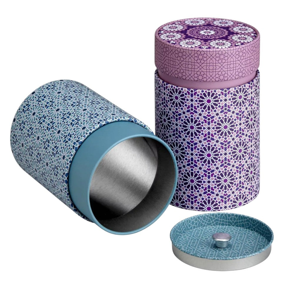 Tauchen Sie ein in die zauberhafte Atmosphäre Andalusiens mit den eleganten Metalldosen Andalusia. Dieses 2er Set von Eigenart entführt Sie mit seinen blau-lila Tönen in die malerische Schönheit der Region. Die Metalldosen bieten nicht nur optisch einen Hauch von Exotik, sondern sind auch äußerst praktisch für die Aufbewahrung Ihrer Lieblings-Tees. Die Metalldose Andalusia ist mit einem Innendeckel ausgestattet, der den Inhalt optimal vor äußeren Einflüssen schützt. Sie eignet sich perfekt zur Aufbewahrung von Tee, Gewürzen oder anderen trockenen Füllgütern. Die hochwertige Verarbeitung aus Weißblech macht diese Teedosen BPA-frei und lebensmittelecht. Mit einer Höhe von ca. 11,7 cm und einem Durchmesser von ca. 7,5 cm bieten die Dosen ausreichend Platz für ca. 100g bis 150g Tee, je nach Teesorte. Die luftdichte Versiegelung ermöglicht es, frischen Tee dunkel und aromaschonend aufzubewahren. Bewahren Sie Ihren Tee am besten kühl und fern von Gewürzen oder Kaffee auf, um die Aromen bestmöglich zu erhalten. Das Eigenart Metalldose Andalusia 150g – 2er Set Teedosen ist nicht nur eine praktische Aufbewahrungslösung, sondern auch eine ästhetische Bereicherung für Ihre Küche oder Ihren Vorratsschrank. Tauchen Sie ein in die Welt des Teegenusses mit diesem stilvollen Set.