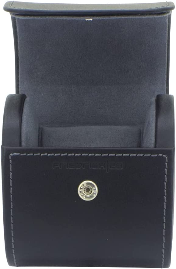 Entdecken Sie die zeitlose Eleganz des Friedrich23 Uhrenetuis – Uhrenrolle Infinity. Handgearbeitet aus hochwertigem schwarzem Echtleder, bietet es Platz für eine Uhr und schützt sie durch ein integriertes Uhrenkissen vor Kratzern, Brüchen und Stößen. Der Druckknopf sorgt für sicheren Halt, während das edle Innenfutter aus Velours Ihre Uhr sanft umhüllt. Mit seinem schlichten, luxuriösen Design ist diese Uhrenrolle nicht nur praktisch, sondern auch ein dekoratives Accessoire. Erleben Sie das handwerkliche Können und die Leidenschaft für Details, die jedes Friedrich23 Produkt auszeichnen.