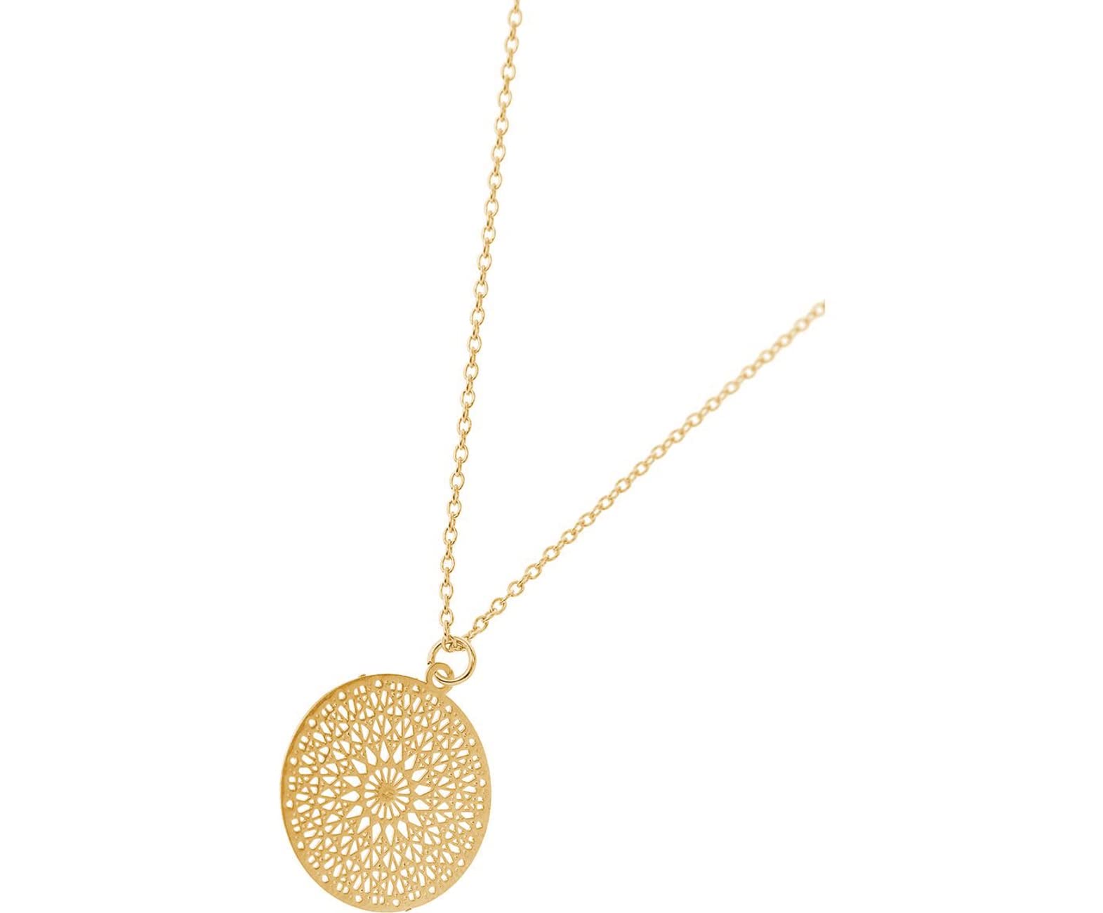 Die Gemshine Halskette mit rundem Mandala Anhänger ist ein zeitloser Klassiker, der in Madrid mit viel Liebe und Sorgfalt hergestellt wurde. Der 1,5 cm Kreis Anhänger an der 45 cm langen Kette besteht aus 925 Silber und ist in hochwertiger Vergoldung erhältlich. Das edle Design und die erstklassige dauerhafte Verarbeitung machen diese Halskette zu einem einzigartigen Schmuckstück. Geliefert wird sie in einem eleganten Schmucketui inklusive Echtheitszertifikat und Ursprungszeugnis. Entdecken Sie die hervorragende Qualität und Verarbeitung dieser handgefertigten Halskette und bringen Sie damit jedes Outfit zum Strahlen.