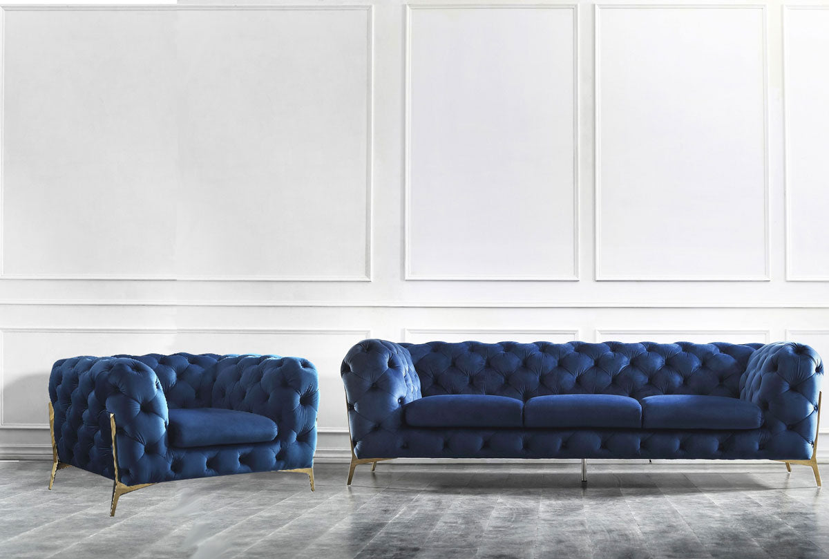 Dieses Sofa-Set bietet eine perfekte Kombination aus Luxus und Komfort. Mit seiner zeitlosen Chesterfield-Design und modernen Akzenten ist es ein ausgezeichneter Zusatz für jedes Wohnzimmer.