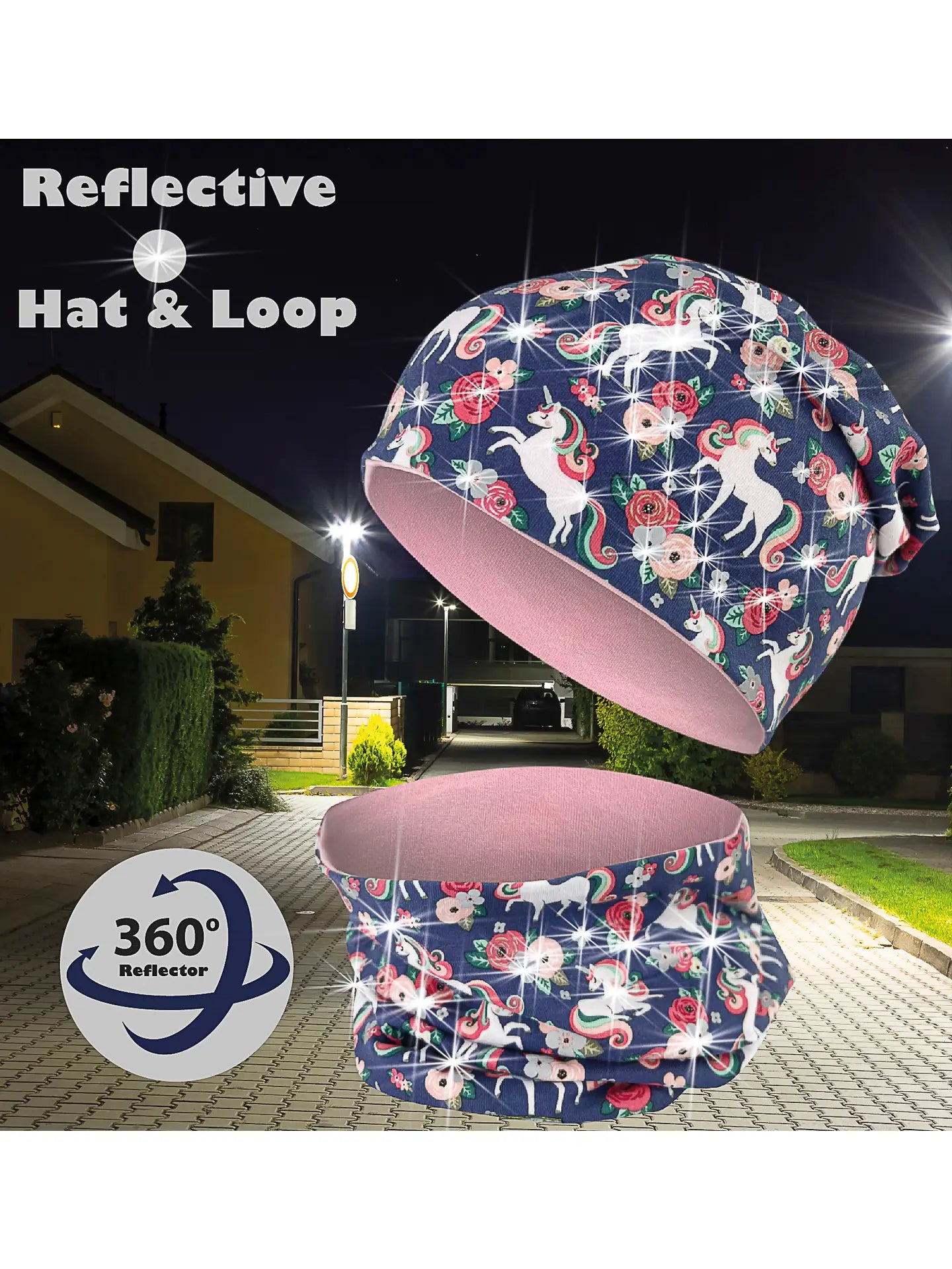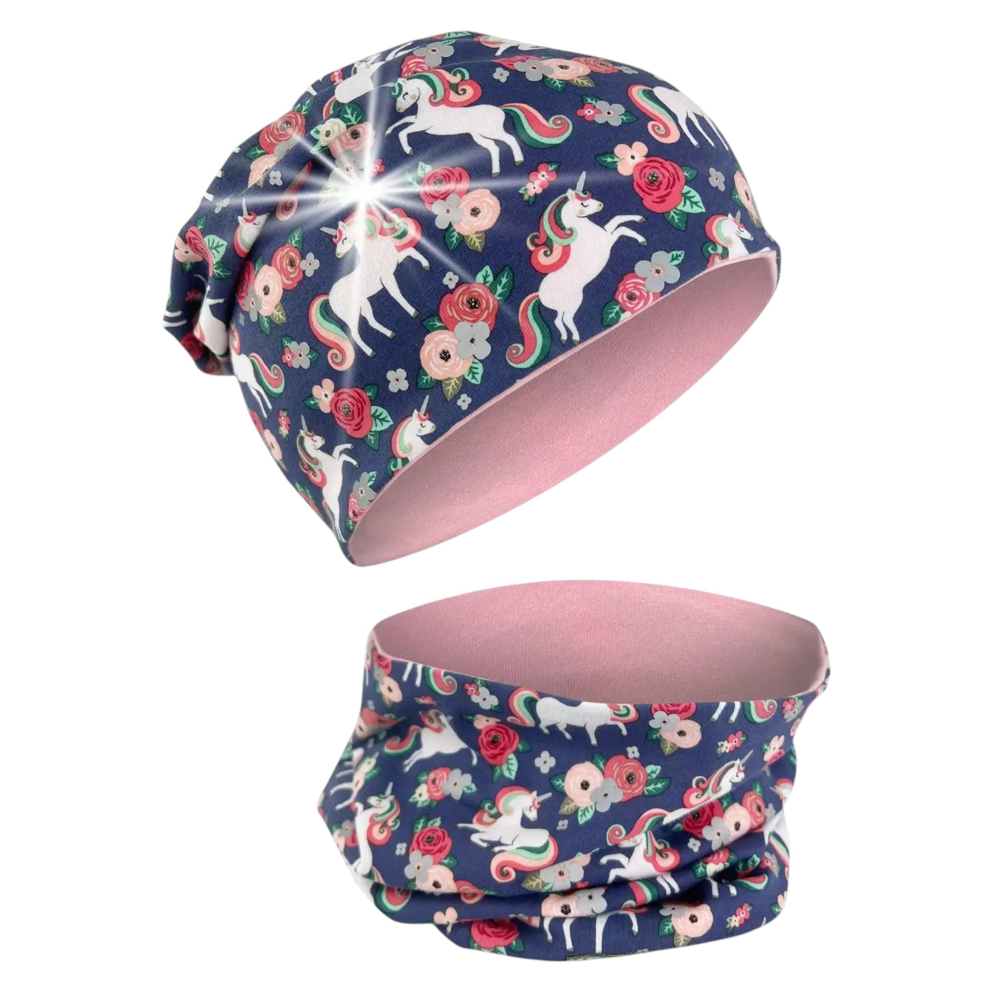 Das HECKBO Kinder 360° Reflektor Mütze & Loop Schal Set mit Einhorn-Motiv ist ein cooles Accessoire für kleine Abenteurer. Das Set enthält eine Mütze und einen Loop Schal, beide aus einem weichen Stretchstoff (95% Baumwolle) gefertigt und für Kinder im Alter von 2 bis 8 Jahren geeignet. Das Highlight dieses Sets sind die 360° Reflektoren, die auf der Mütze und dem Schal angebracht sind. Diese reflektierenden Punkte sorgen für eine verbesserte Sichtbarkeit bei schlechten Lichtverhältnissen, da sie auf Laternen- oder Scheinwerferlicht reagieren und strahlen. Vielseitig einsetzbar, ist dieses Set perfekt für Kindergarten, Schule, Spielplatz, Sport, Urlaub und mehr.