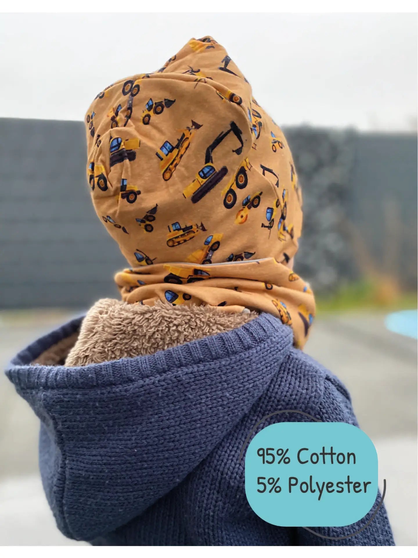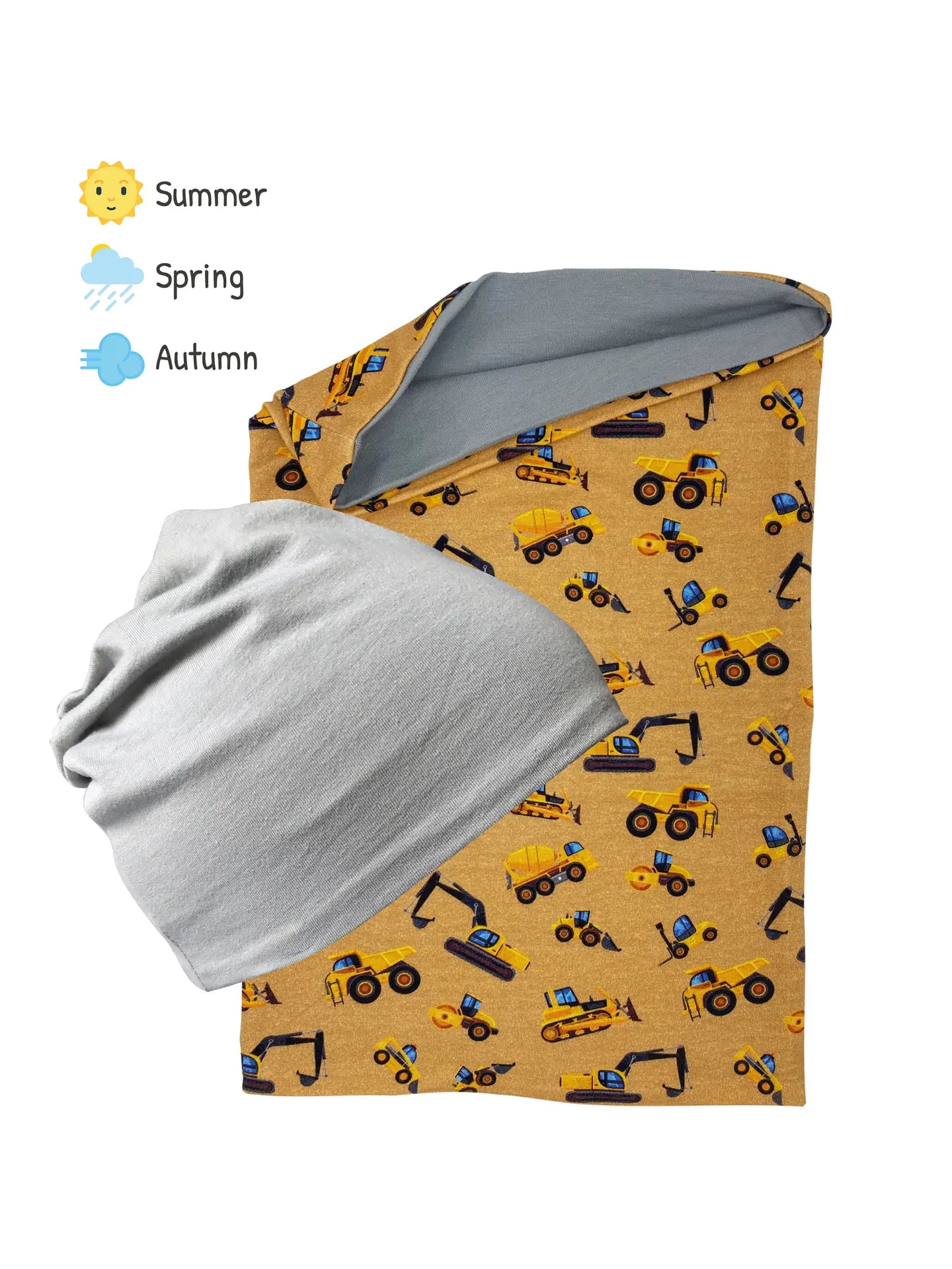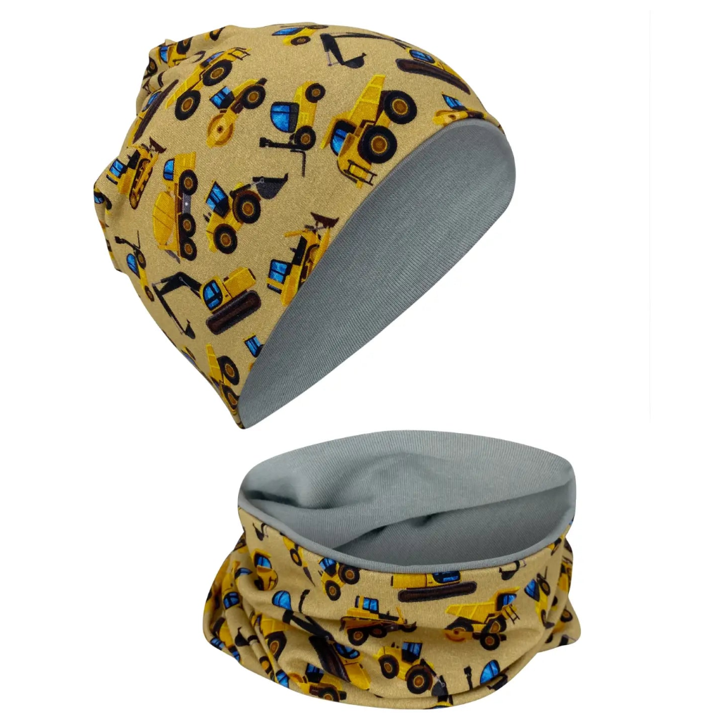 Das HECKBO Kinder Beanie Mütze & Schal Set ist ein cooles und praktisches Accessoire für kleine Baufahrzeuge Liebhaber im Alter von 2 bis 8 Jahren. Das Set besteht aus einer Mütze und einem Loop-Schal. Das Highlight dieses Sets ist die Wendbarkeit der Weltraum Beanie Mütze und des passenden Loopschals. Beide Produkte können beidseitig getragen werden. Während eine Seite das farbenfrohe Baufahrzeug Design zeigt, ist die andere Seite in schlichtem Hellgrau gehalten. Dadurch lässt sich das Set vielseitig mit verschiedenen Kleidungsstücken kombinieren.