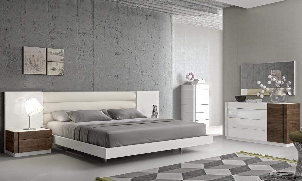 Dieses Premium Schlafzimmer-Set bietet ein elegantes Design und hochwertige Materialien. Es vereint die Schönheit von weißem Lack und warmem Nussbaumholz, um ein zeitloses und ansprechendes Schlafzimmer zu schaffen. Die Komponenten des Sets sind mit Sorgfalt gefertigt und bieten lang anhaltende Haltbarkeit.