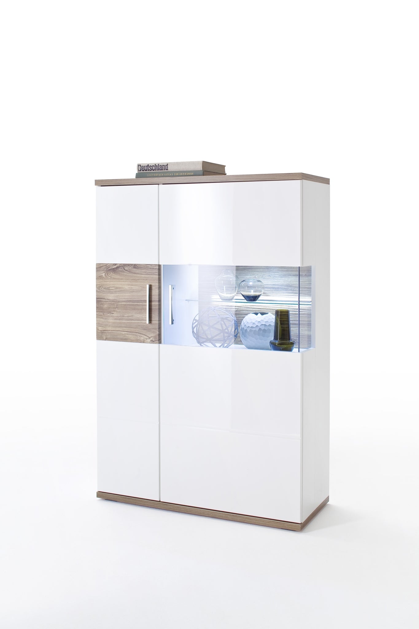 - Front: Weiß Hochglanz tiefzieh Nachbildung mit Absetzungen Sterling Oak tiefzieh Nachbildung