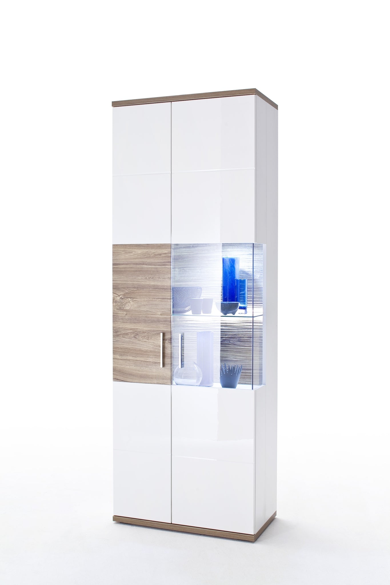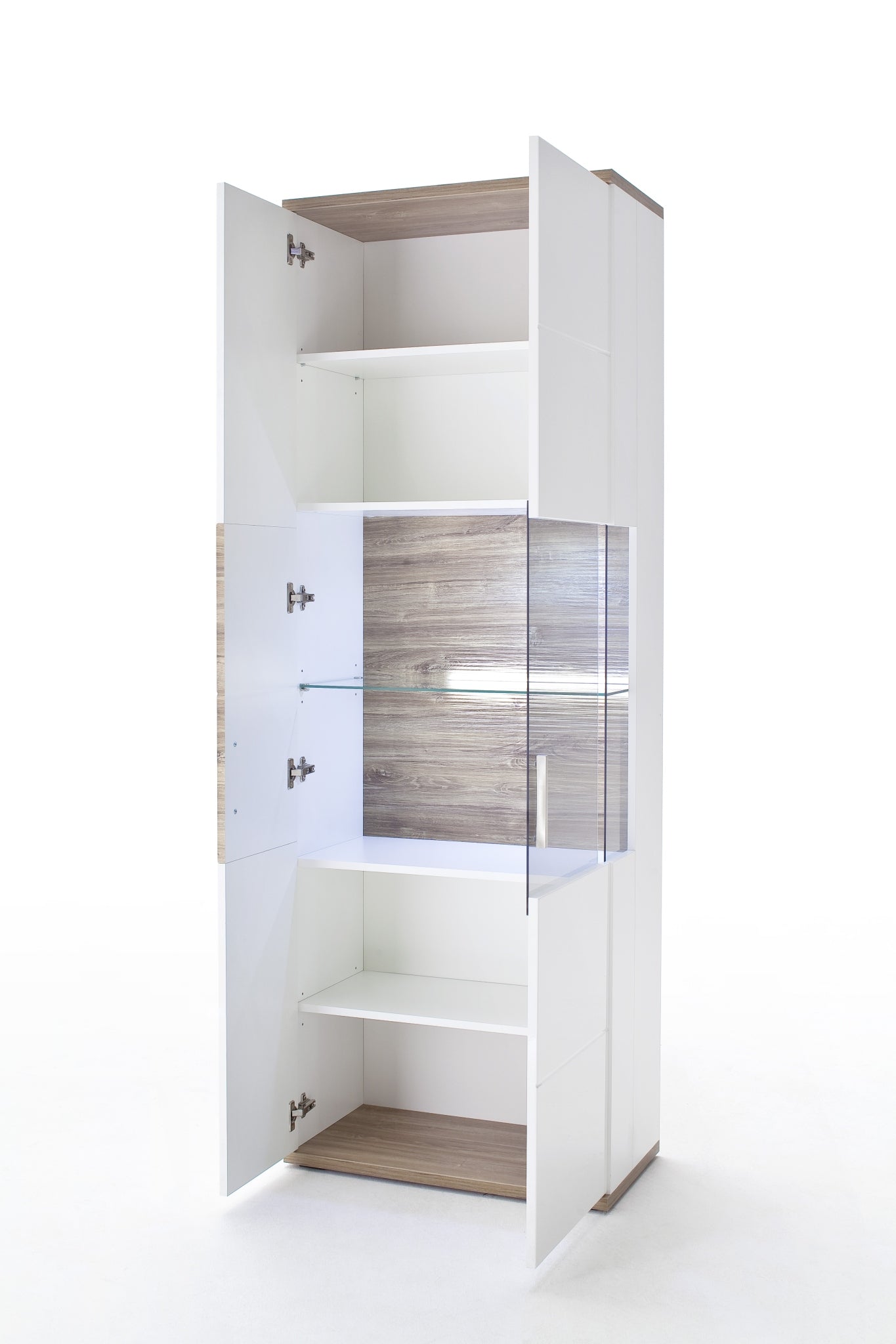 - Front: Weiß Hochglanz tiefzieh Nachbildung mit Absetzungen Sterling Oak tiefzieh Nachbildung