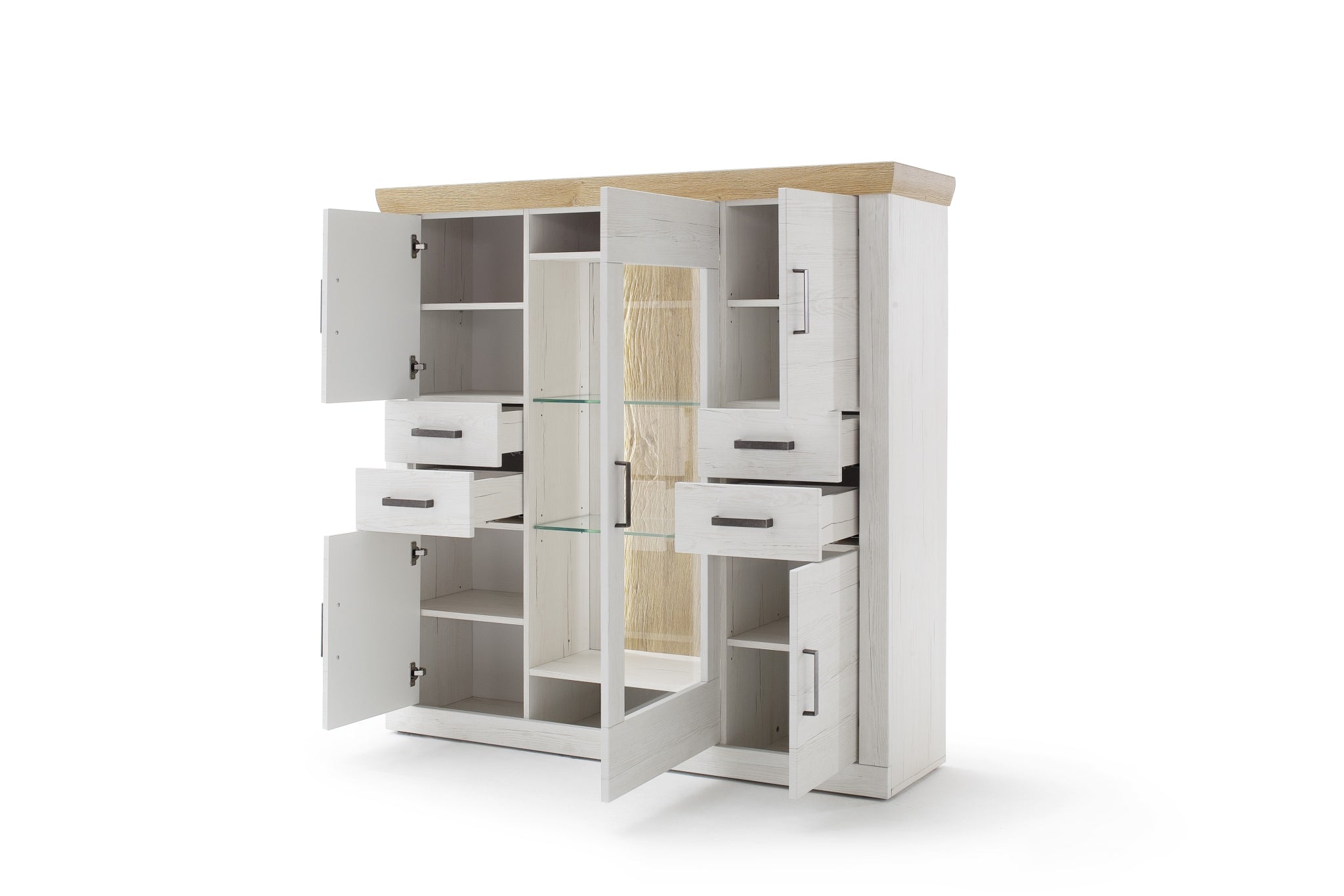 - Rückwand: sichtbar: 3D-Grandson Oak strukturiert hinter Türen & Schubkästen: Weiß Nachbildung