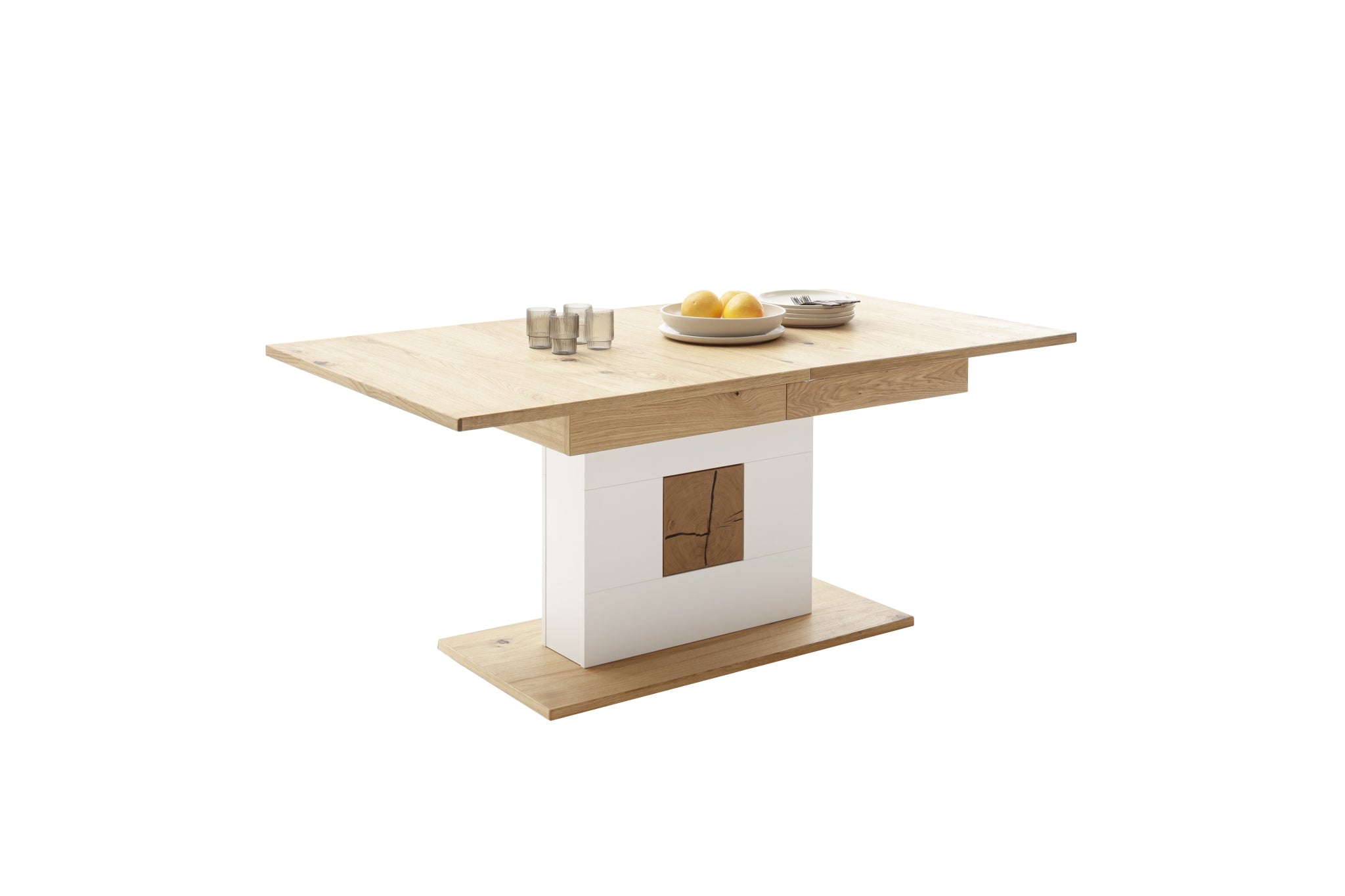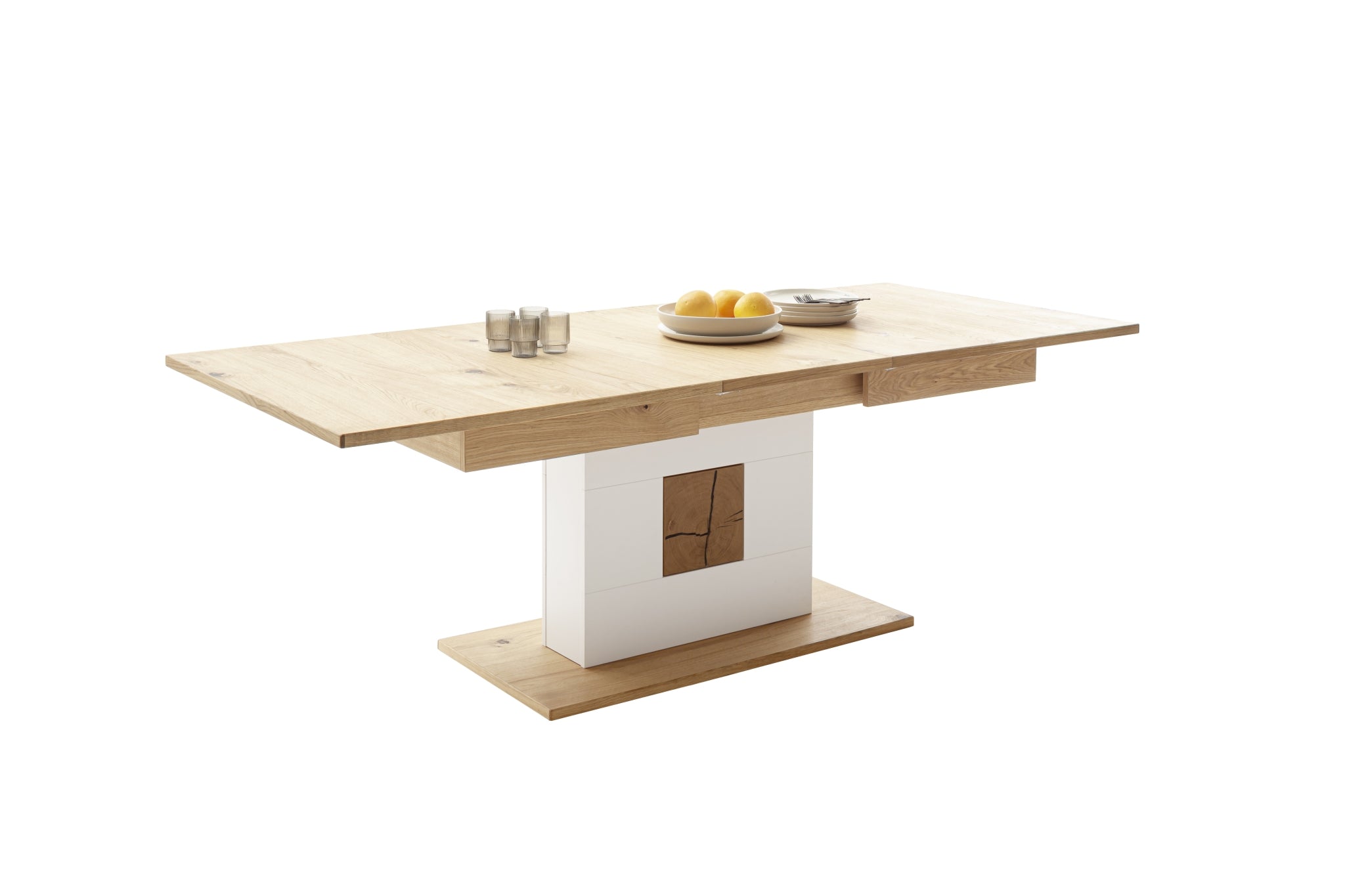 - Tisch- / Bodenplatte: Ast- / Balkeneiche furniert in Wildeiche geölt