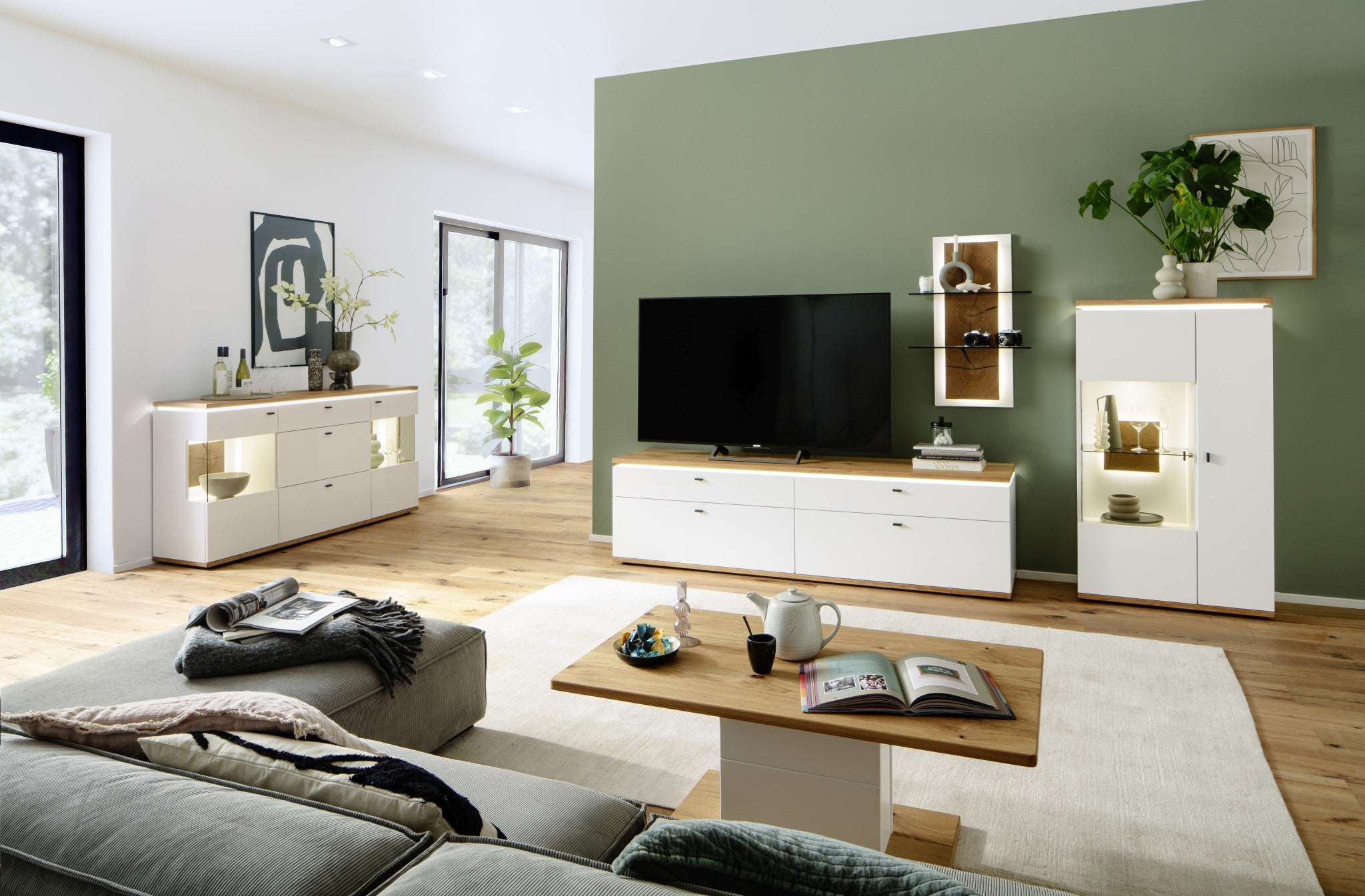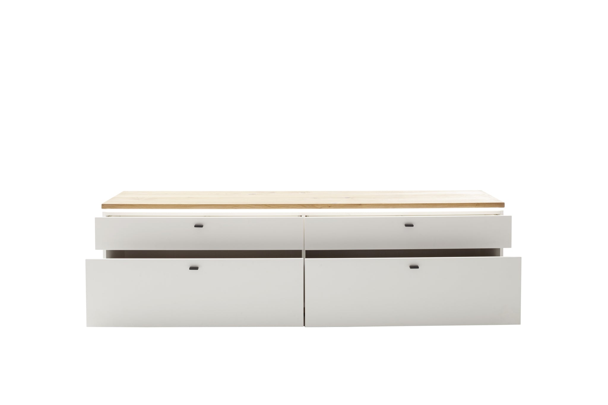- Korpusabsetzung: Ast- /Balkeneiche furniert in Wildeiche geölt