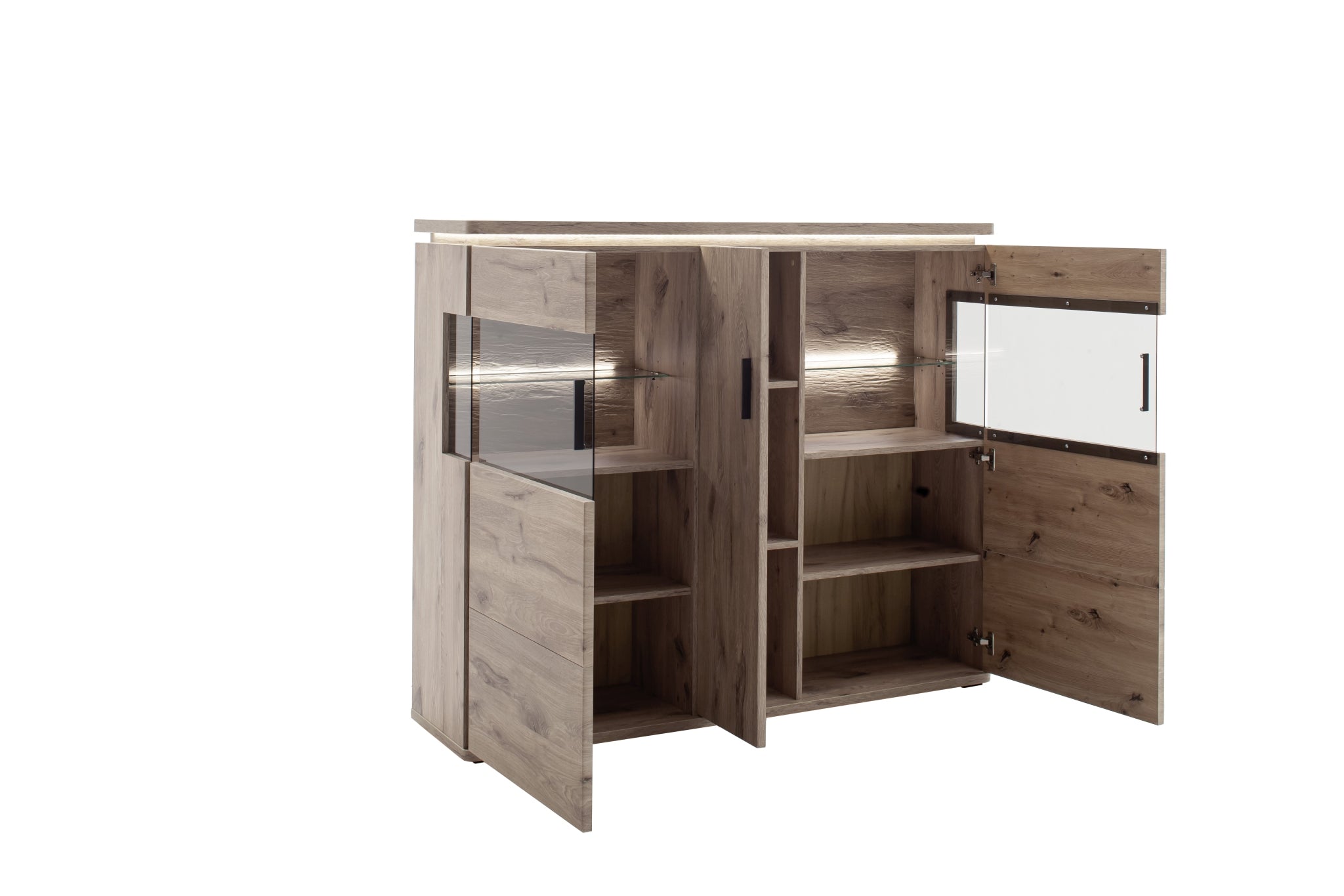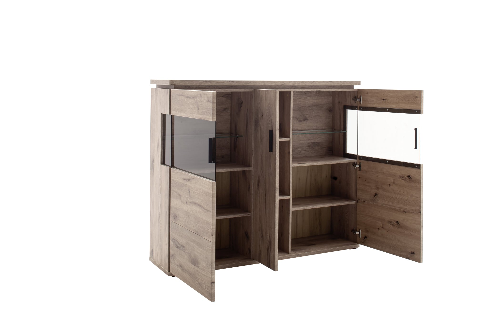 - Rückwand: sichtbar: 3D Viking Oak sandgestrahlt Nachbildung hinter Türen: Viking Oak Nachbildung