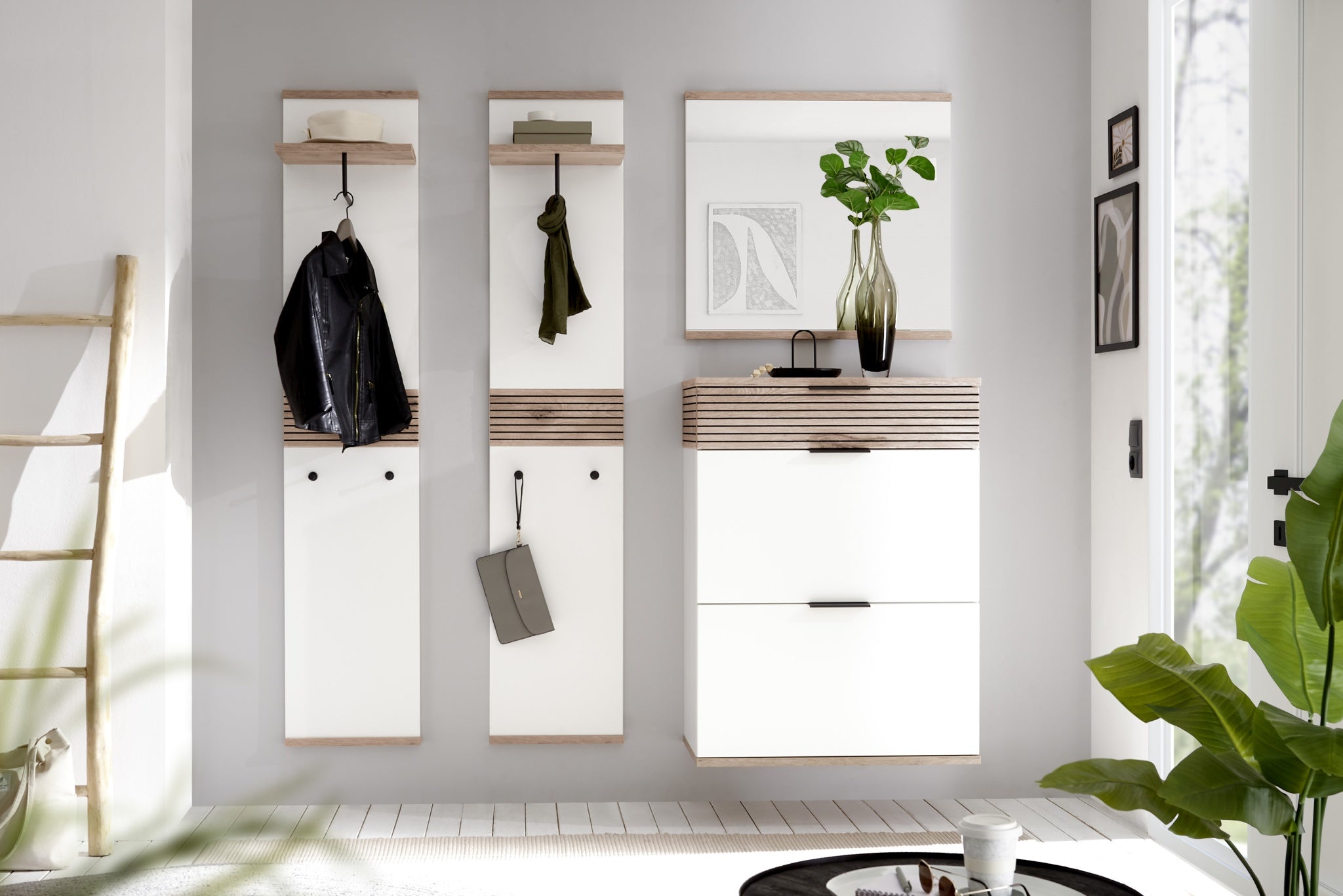 - 1 Paneel / 1 Hutablage / 1 Kleiderstange / 2 Haken