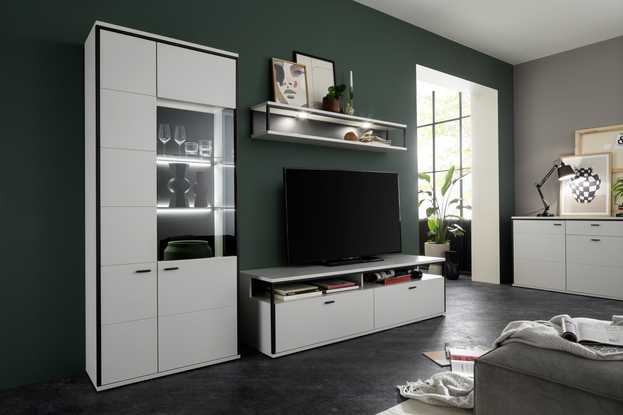 - Boden: Modern white Melamin Nachbildung, Aluminiumprofil schwarzgrau