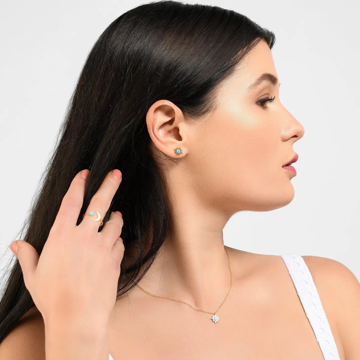Die NAMANA Gold Sunburst Opal Ohrstecker sind ein atemberaubendes Schmuckstück, das mit seinem strahlenden Design die Blicke auf sich zieht. Diese zierlichen Ohrstecker sind für Damen, die das Besondere lieben, und eignen sich perfekt für den Alltag sowie besondere Anlässe. Die Ohrstecker präsentieren ein elegantes Sunburst-Design mit einem gebürsteten Finish, das ihnen einen Hauch von Raffinesse verleiht. In der Mitte jedes Ohrsteckers befindet sich ein feuriger synthetischer blauer Opal, der im Licht funkelt und strahlt. Mit einer Größe von 10 mm sind diese Ohrstecker auffällig, aber dennoch zierlich und angenehm zu tragen. Sie sind aus 14 Karat vergoldetem Messing gefertigt und von höchster Qualität. Unsere Ohrstecker sind hypoallergen, nickelfrei und bleifrei, was sie ideal für Personen mit empfindlichen Ohren macht. Die Stifte sind aus 925er Sterlingsilber gefertigt, um höchsten Tragekomfort zu gewährleisten. Diese wunderschönen Ohrstecker werden in einer speziell designten Schmuckschatulle geliefert, wodurch sie sich auch hervorragend als Geschenk für Weihnachten, Geburtstage oder Jubiläen eignen. Mit den NAMANA Gold Sunburst Opal Ohrsteckern verleihen Sie Ihrem Look einen Hauch von Luxus und Eleganz. Bestellen Sie diese exquisiten Ohrstecker noch heute und genießen Sie das Strahlen und Funkeln des Opals.