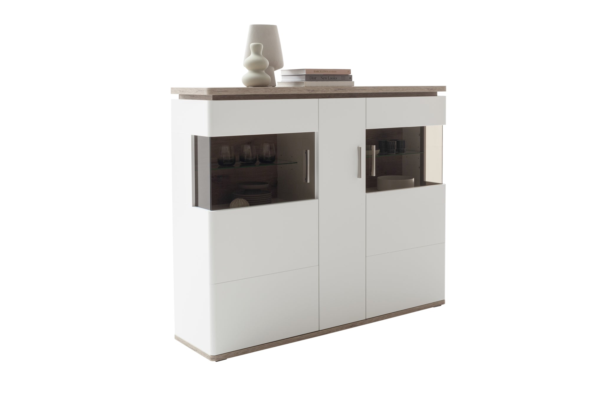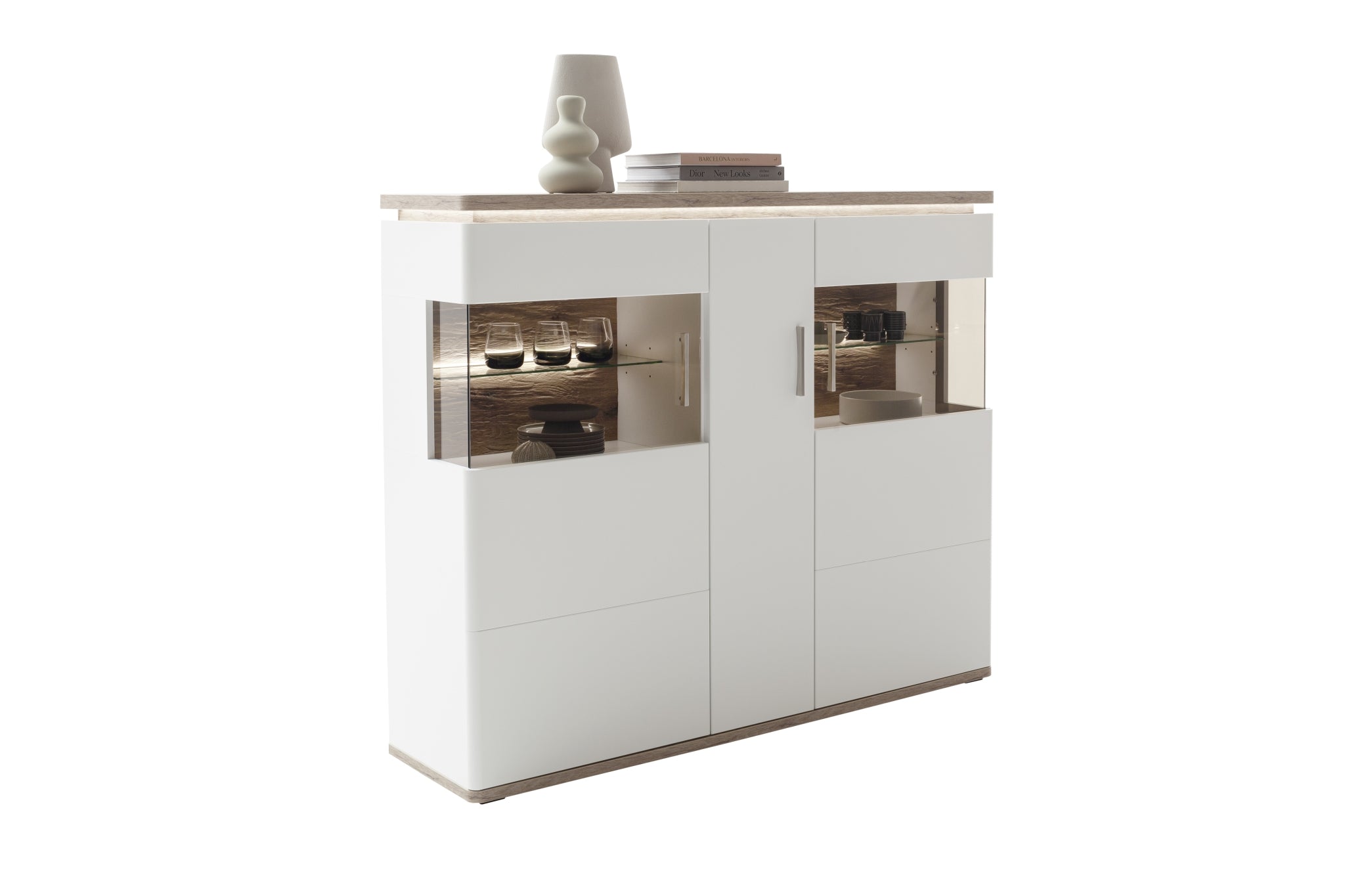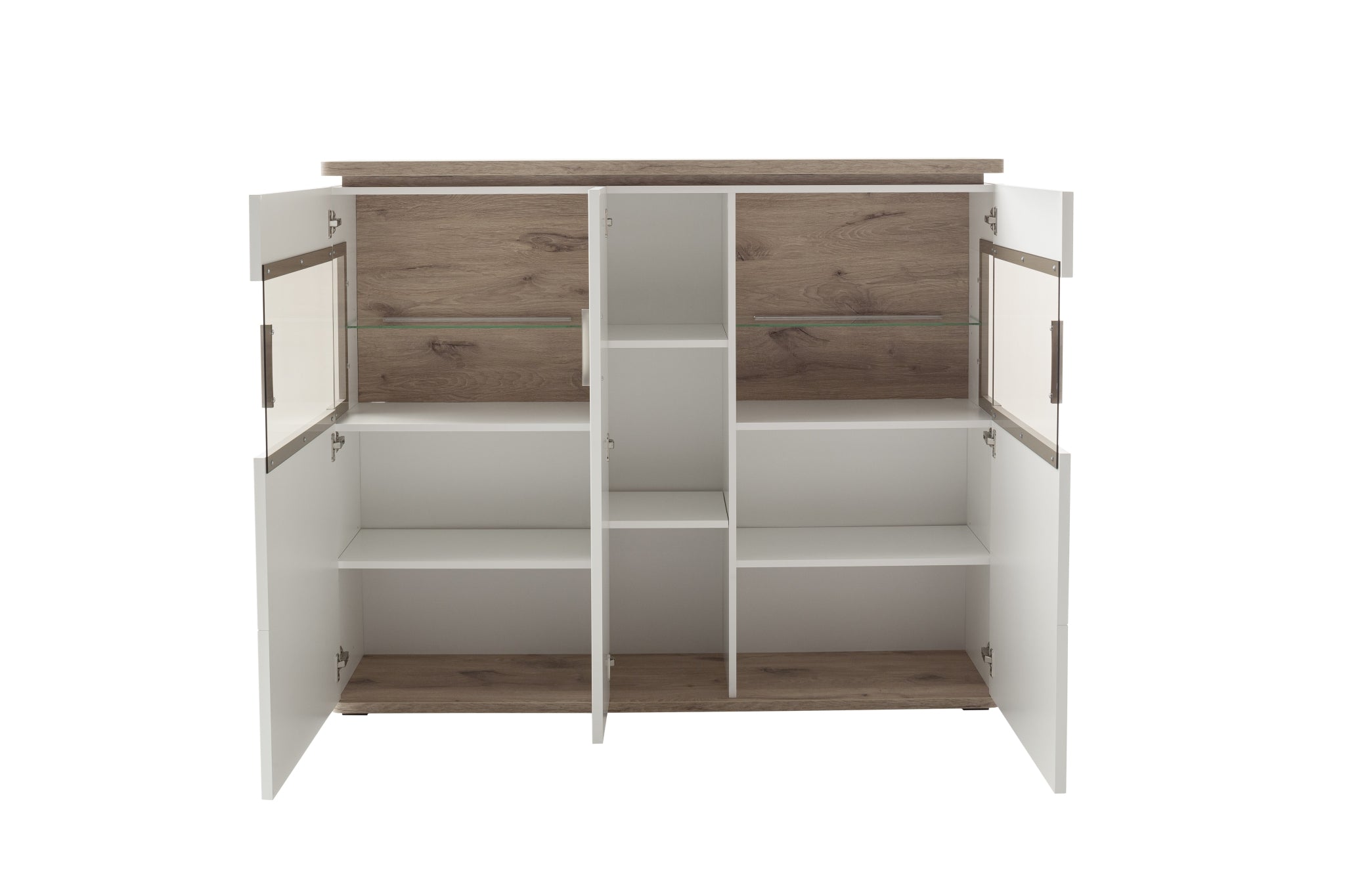 - Rückwand: sichtbar: 3D Viking Oak Nachbildung geschroppt hinter Türen & Schubkästen: Soft white Nachbildung
