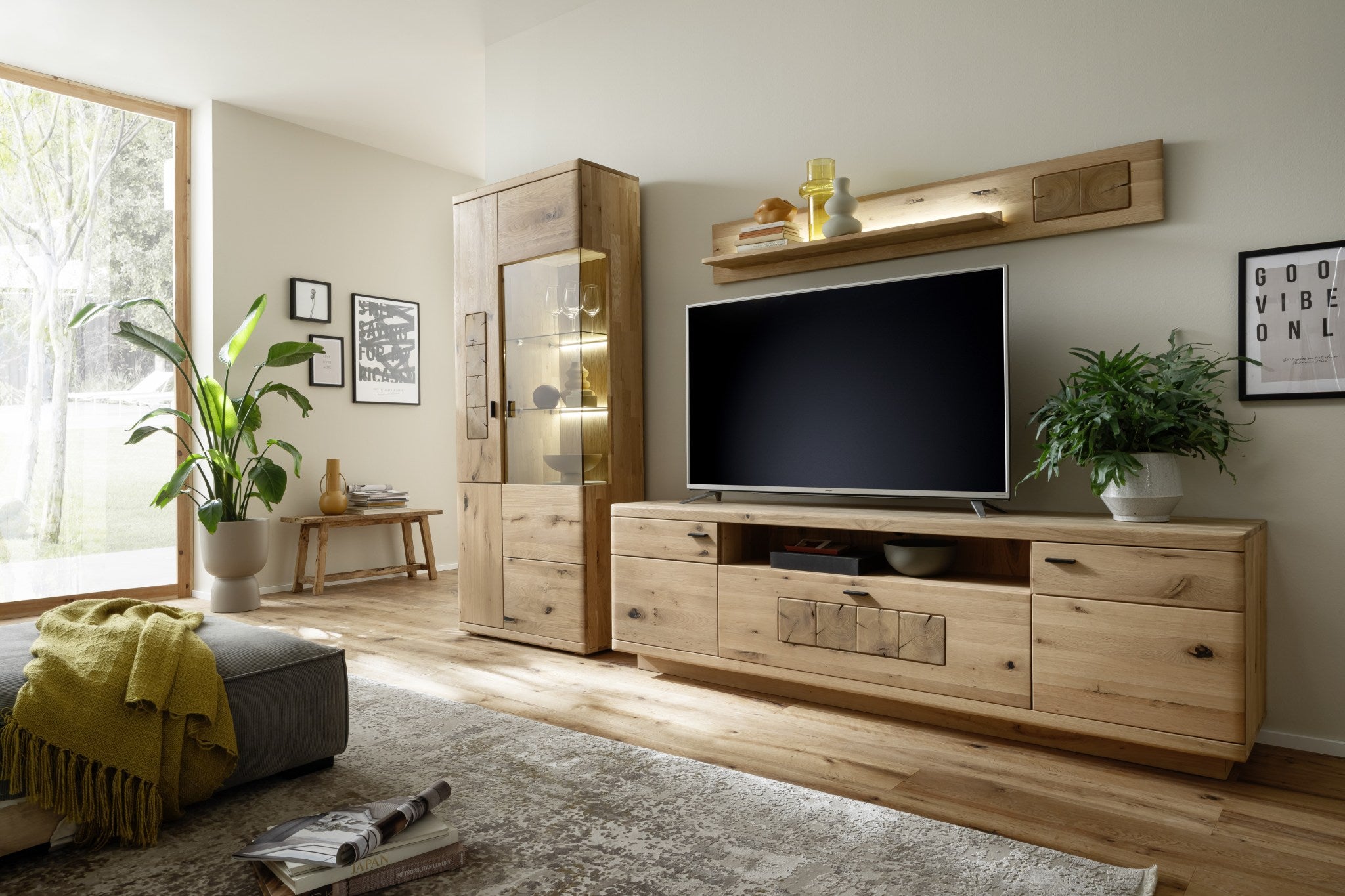 - Rückwand: Ast-/Balkeneiche furniert in Kristalleiche geölt
