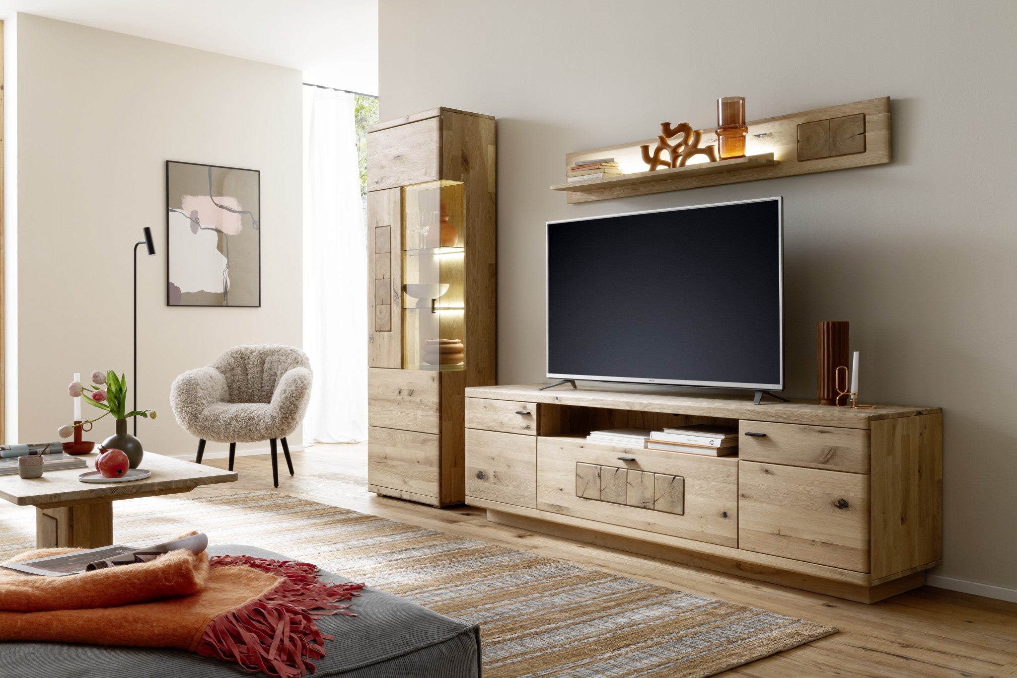 - Rückwand: Ast-/Balkeneiche furniert in Kristalleiche geölt