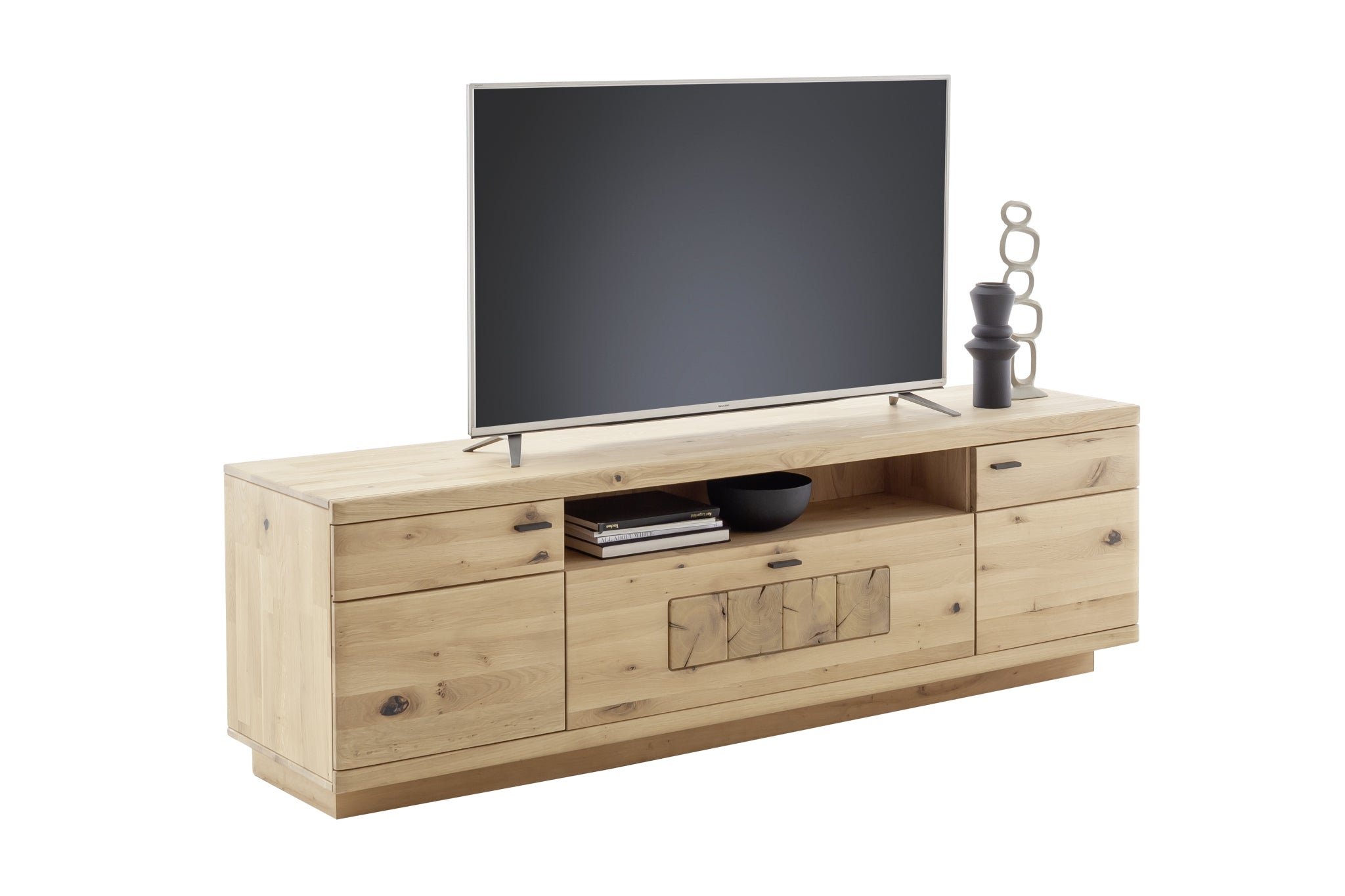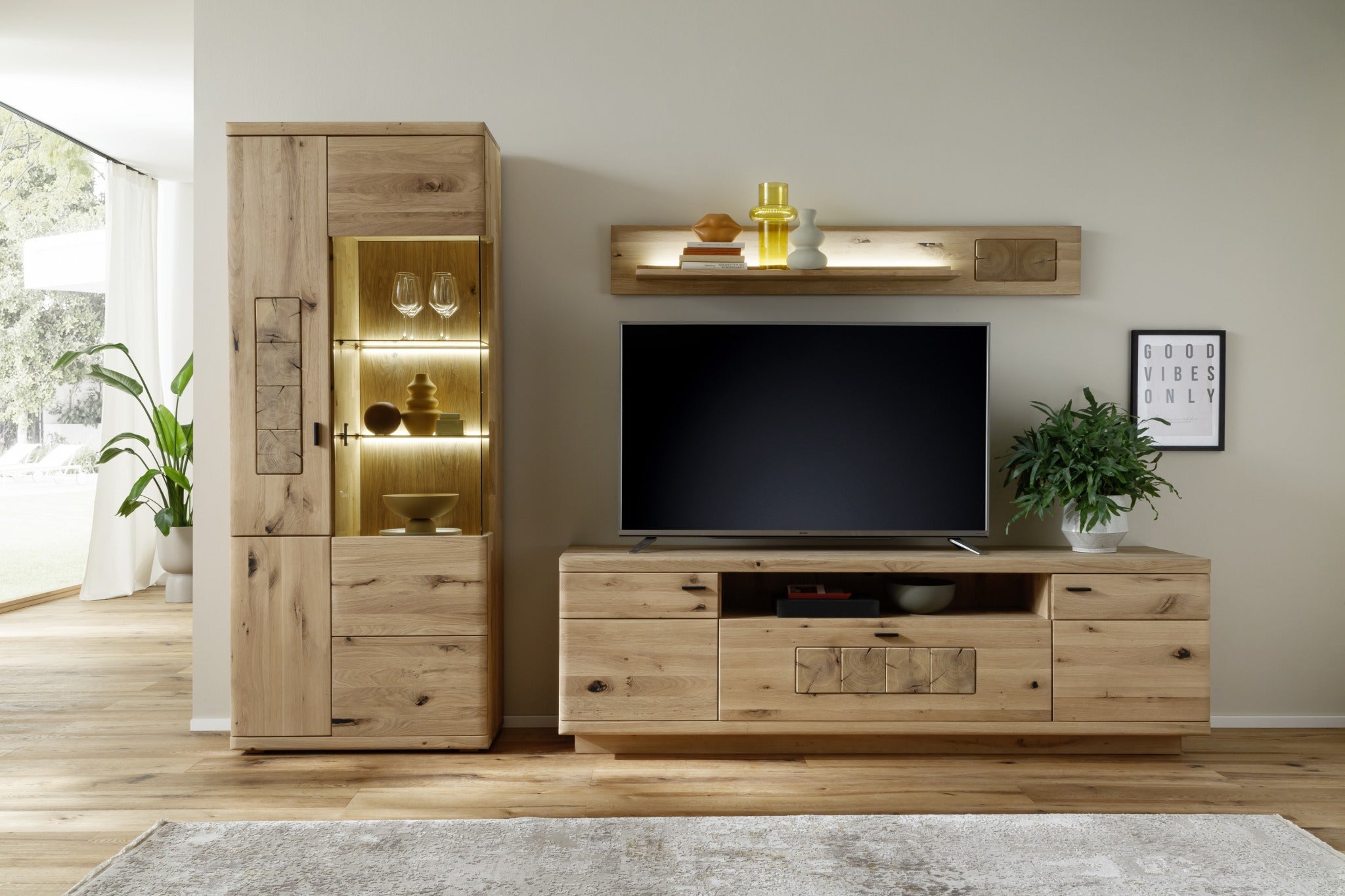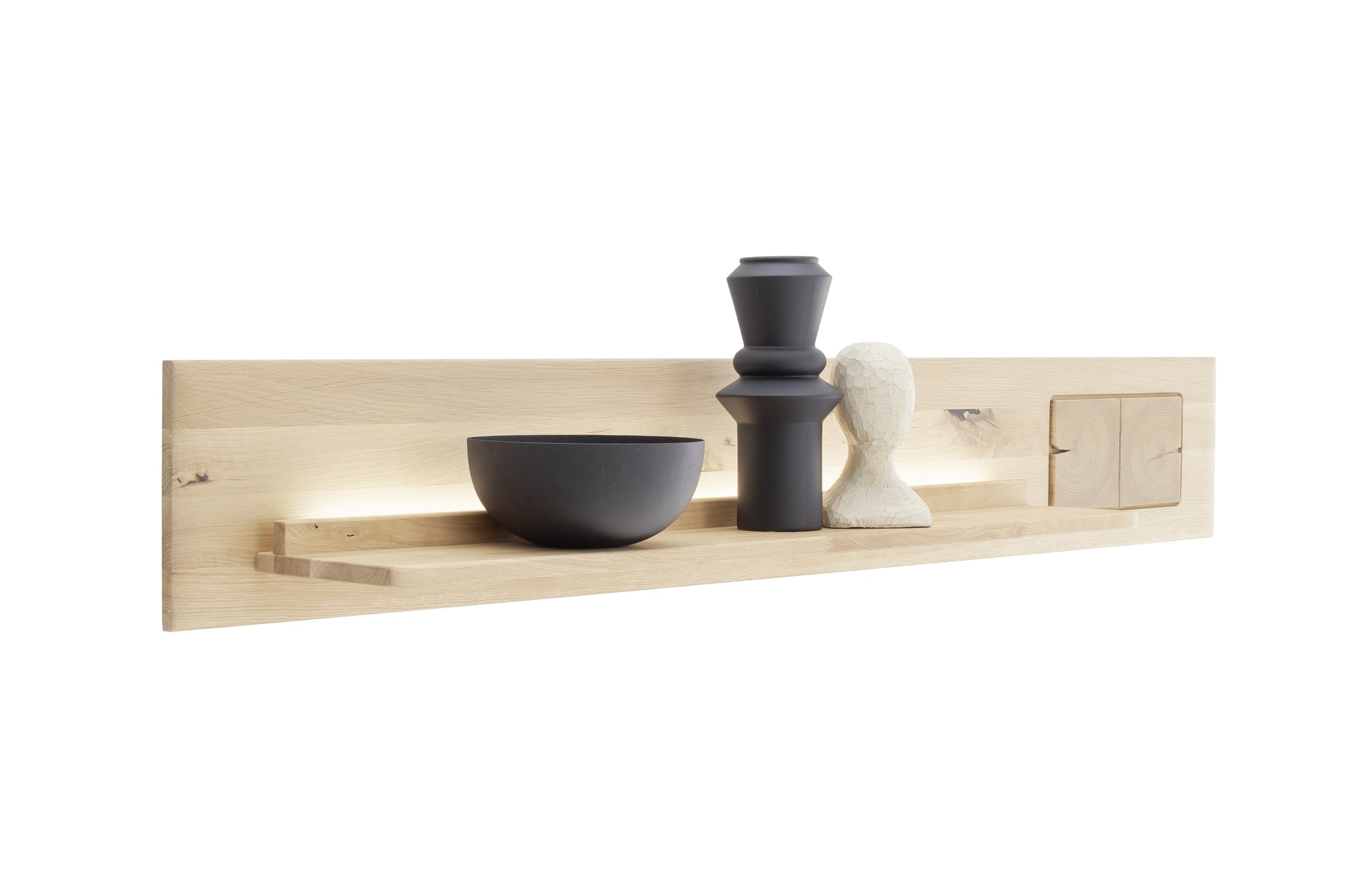 - Korpus: Ast-/Balkeneiche massiv durchgehende Lamelle mit Hirnholzapplikationen in Kristalleiche geölt
