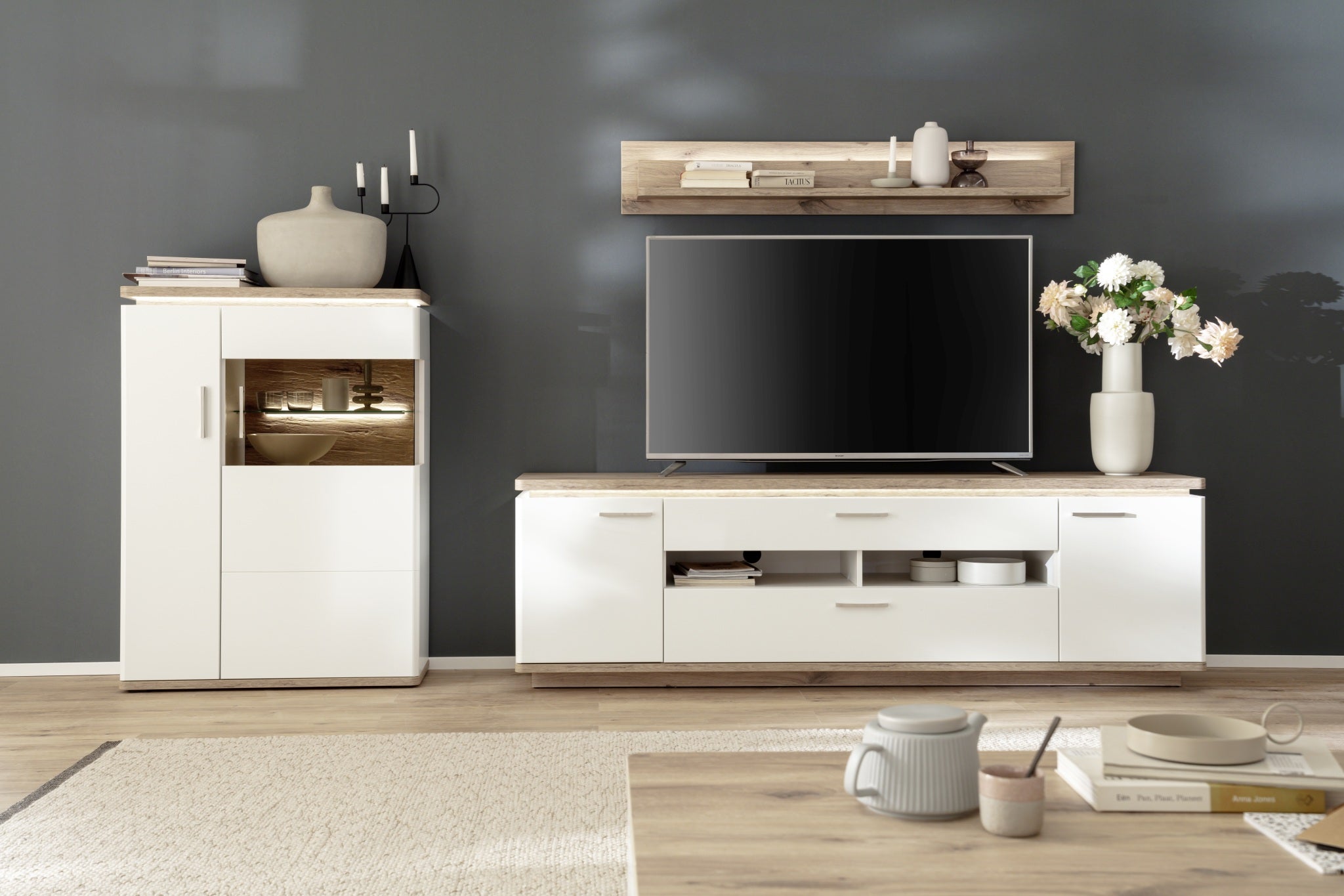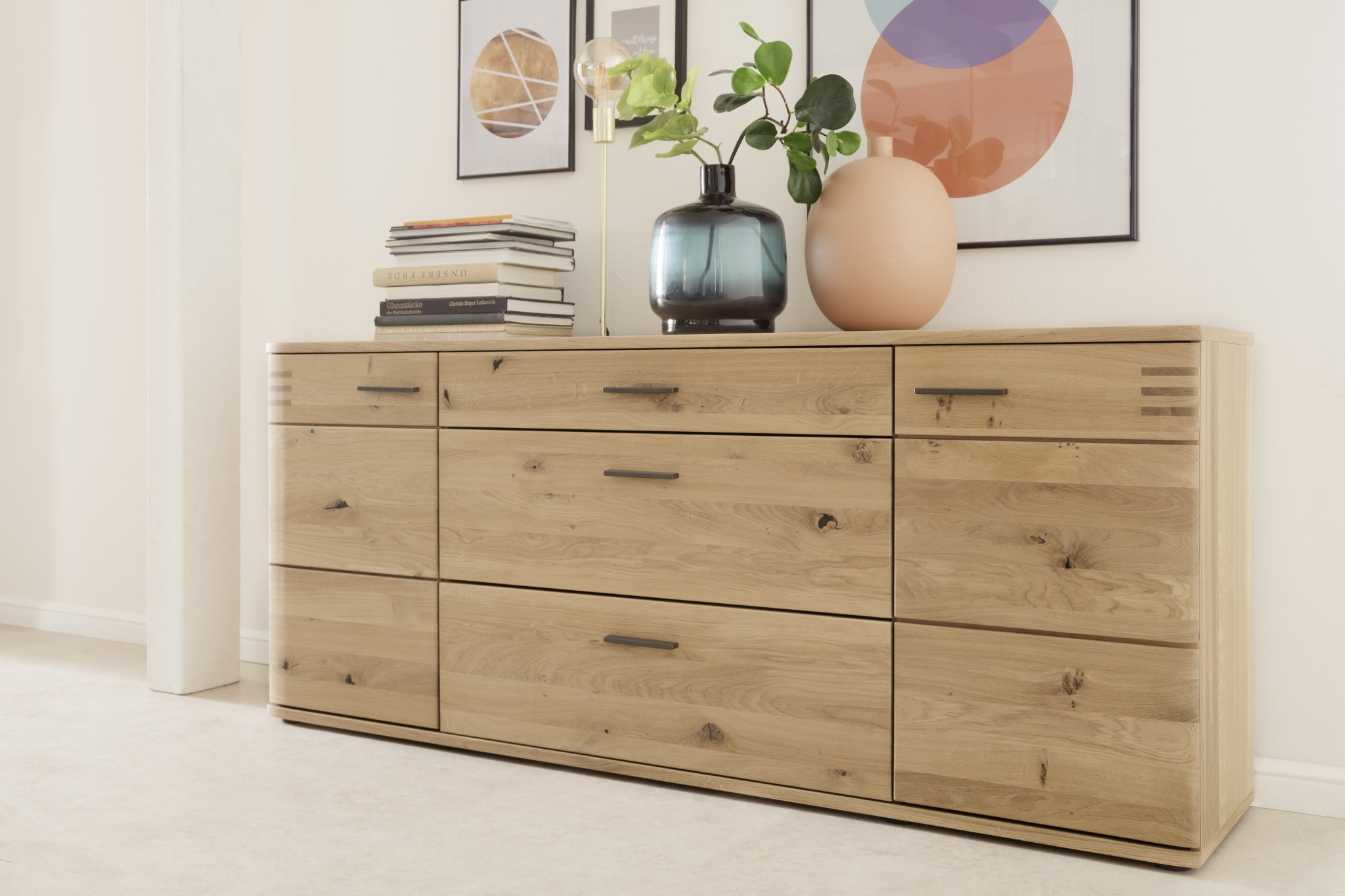 - Korpus: außen: Eiche Bianco furniert geölt / innen: Eiche Bianco NB