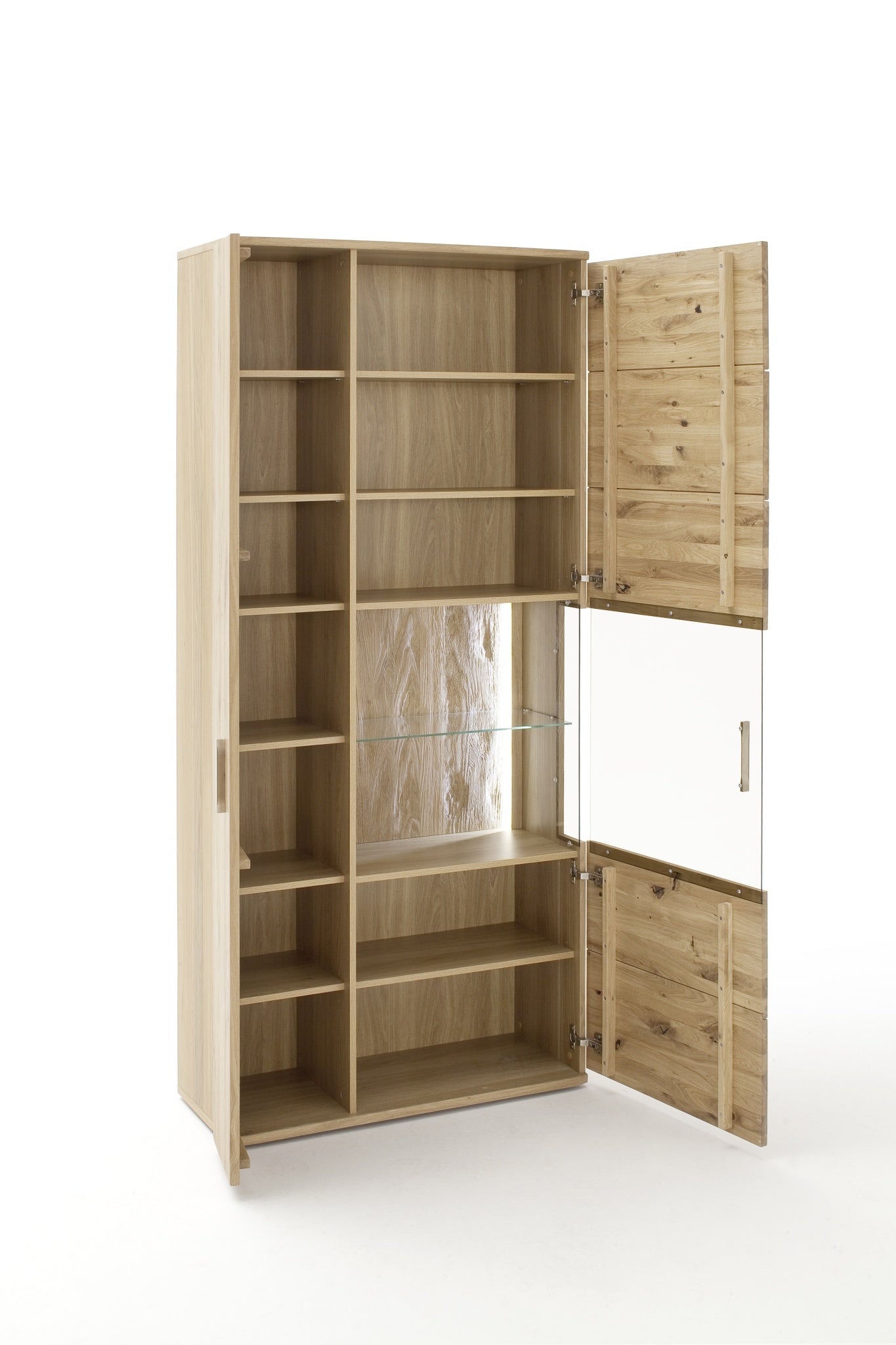 - Rückwände: hinter Glas & Paneelrahmen: massiv strukturiert hinter Türen: Eiche Dekor