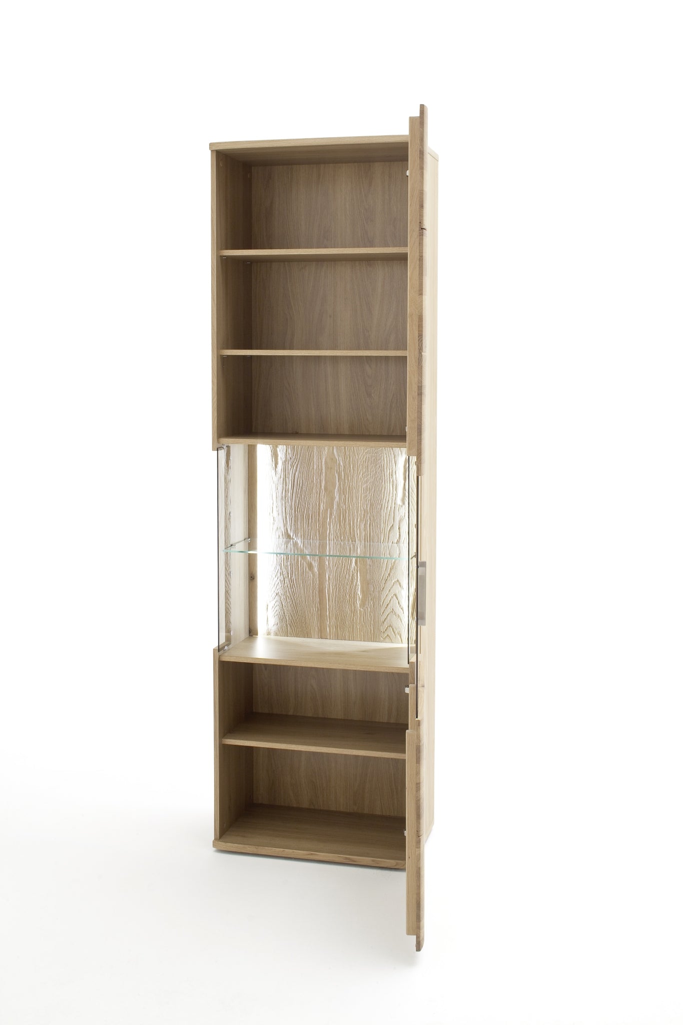 - Rückwände: hinter Glas & Paneelrahmen: massiv strukturiert hinter Türen: Eiche Dekor