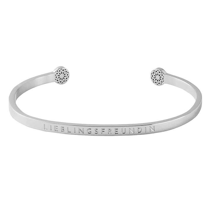 Das Simple Pledge Armreif mit Gravur in Silber ist ein elegantes und einzigartiges Schmuckstück, das als Geschenk oder Glücksbringer für Frauen und Mädchen geeignet ist. Der Armreif ist stufenlos größenverstellbar und aus hypoallergenem Edelstahl gefertigt. Er ist 3,1mm breit und mit einer hochwertigen Gravur versehen, die nicht abfärbt. Dieses Armreif lässt sich als Damenarmband, Sprucharmband, Freundschaftsarmband oder einfach nur als Damenschmuck betrachten. Geliefert wird der Armreif in einer edlen Geschenkverpackung und einem hübschen Schmuck Säckchen.