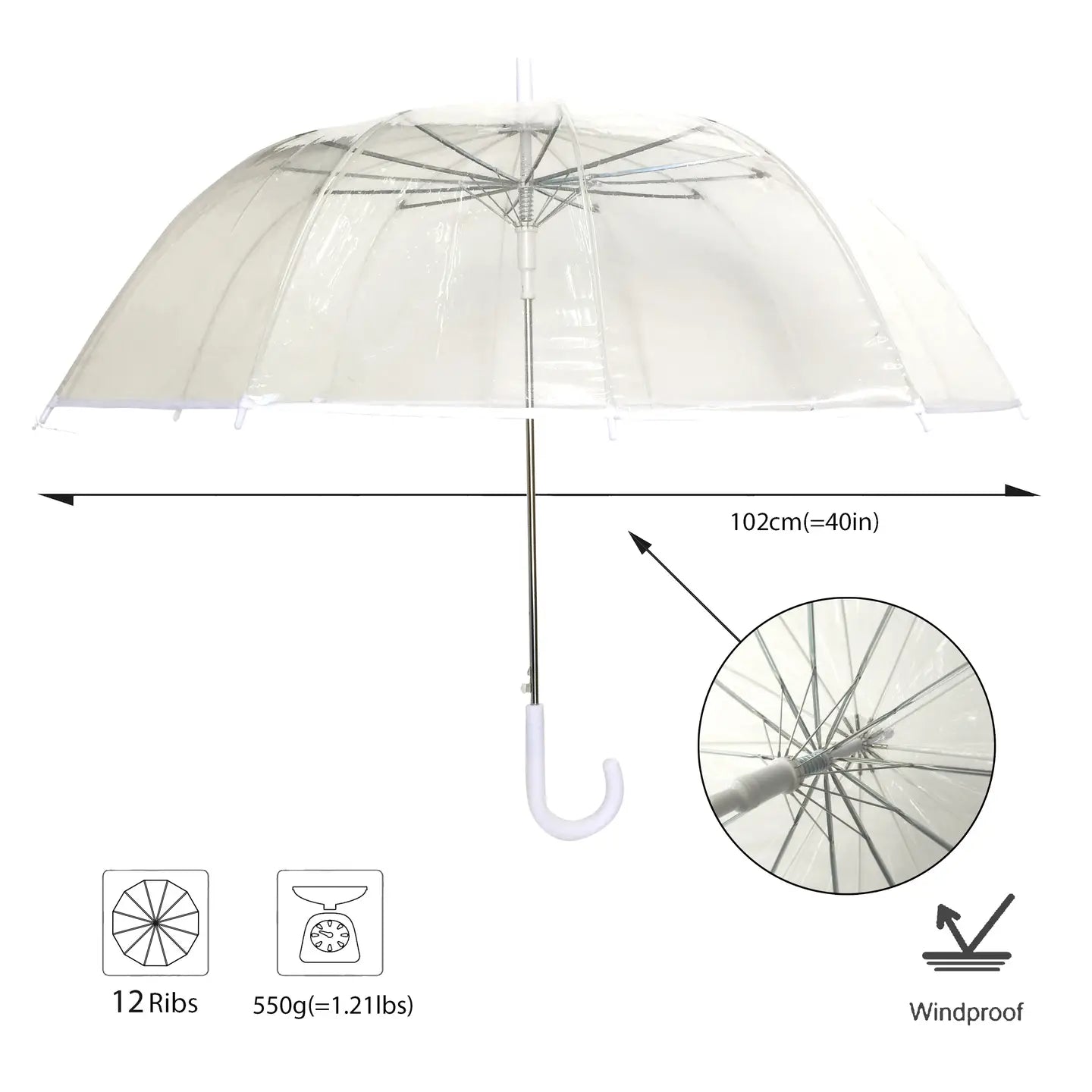 Der SMATI große transparente Schirm mit weißem Rand ist das perfekte Accessoire für Hochzeiten und besondere Anlässe. Mit seinen 12 eleganten Rippen, die durch das transparente POE-Gewebe sichtbar sind, sorgt er für einen stilvollen Auftritt. Der großzügige Durchmesser von 102 cm bietet ausreichend Platz für zwei Personen, während das automatische Öffnungssystem für schnellen Schutz auf Knopfdruck sorgt. Genießen Sie klare Sicht bei jedem Wetter und machen Sie diesen Schirm zum unverzichtbaren Begleiter für festliche Events.