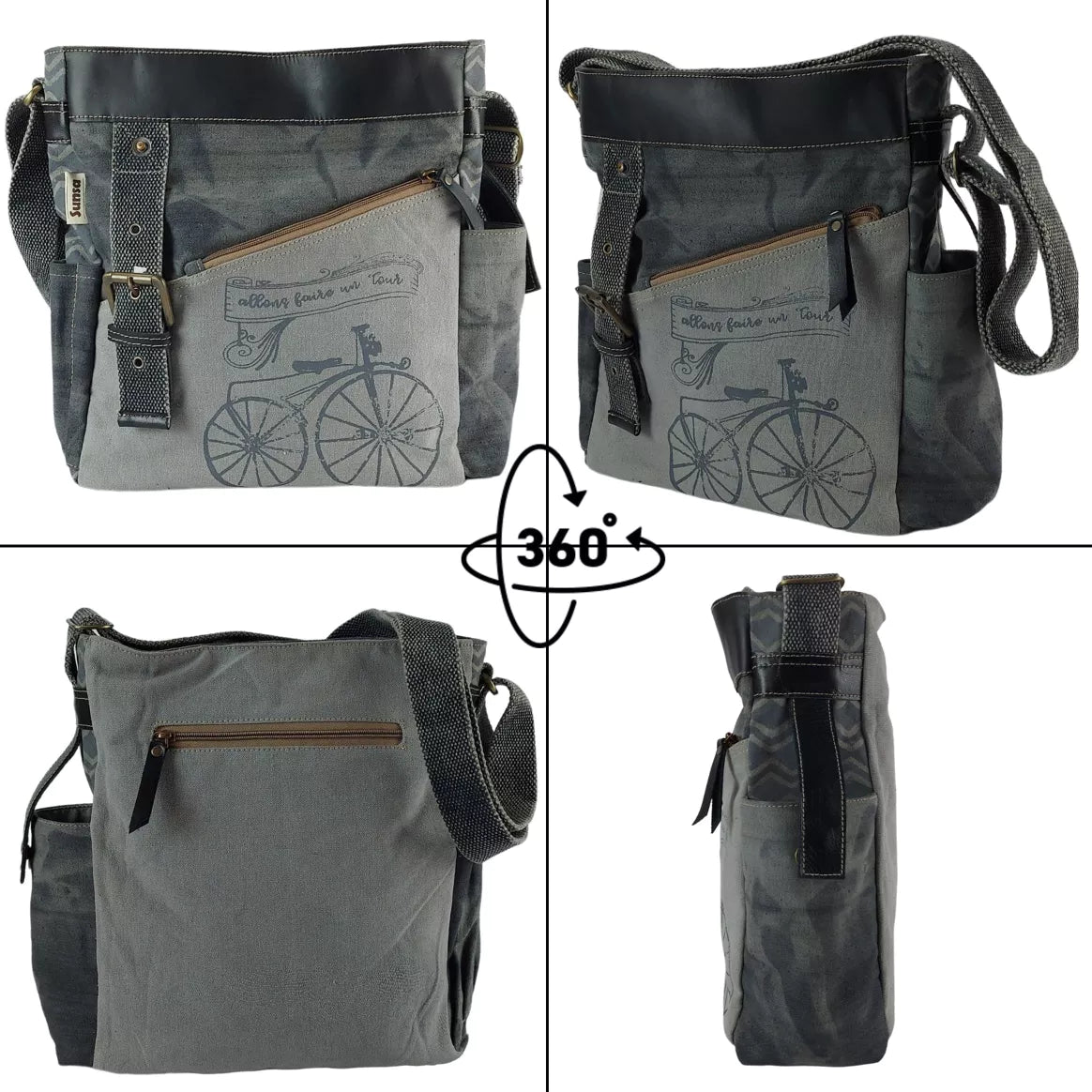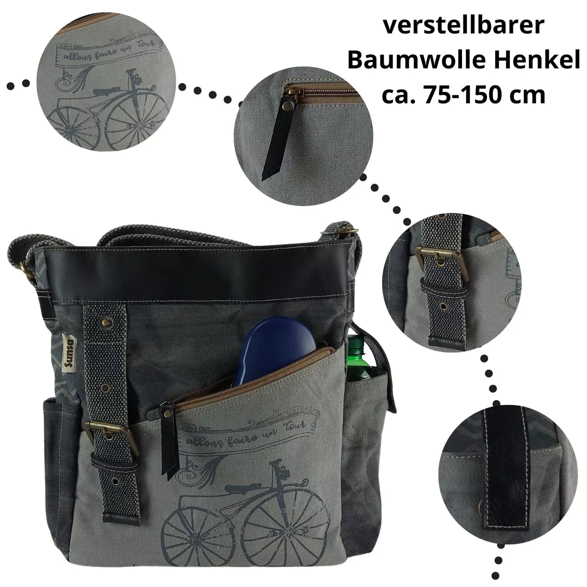 Die Sunsa Damen Umhängetasche ist mehr als nur eine Tasche – sie ist ein Statement für Einzigartigkeit und Vielfalt. Unsere Marke Sunsa setzt auf Design, das diese Werte widerspiegelt, und durch unsere Upcycling Taschen tragen wir aktiv dazu bei, Abfall zu reduzieren und Ressourcen zu schonen. Hergestellt aus einer raffinierten Kombination von robustem Canvas und echtem, weichem Leder, beeindruckt diese Schultertasche durch ihren Vintage Stil und ihre praktische Größe. Die Maße von ca. 29x34x12 cm bieten ausreichend Platz für alles, was du unterwegs benötigst. Die Tasche verfügt über Reißverschlüsse am Haupt-, Front- und Rückfach, wodurch deine Wertgegenstände sicher aufbewahrt sind. Im Inneren findest du zwei Einsteckfächer und ein zusätzliches Reißverschlussfach für optimale Organisation. Seitlich befinden sich ein Einsteck Seitenfach sowie ein Seitenfach mit Magnetverschluss. Der verstellbare Henkel von ca. 75-150 cm ermöglicht es dir, die Tasche bequem über der Schulter oder als Crossbody Tasche zu tragen, und verleiht dir dabei stets einen stilvollen Look.