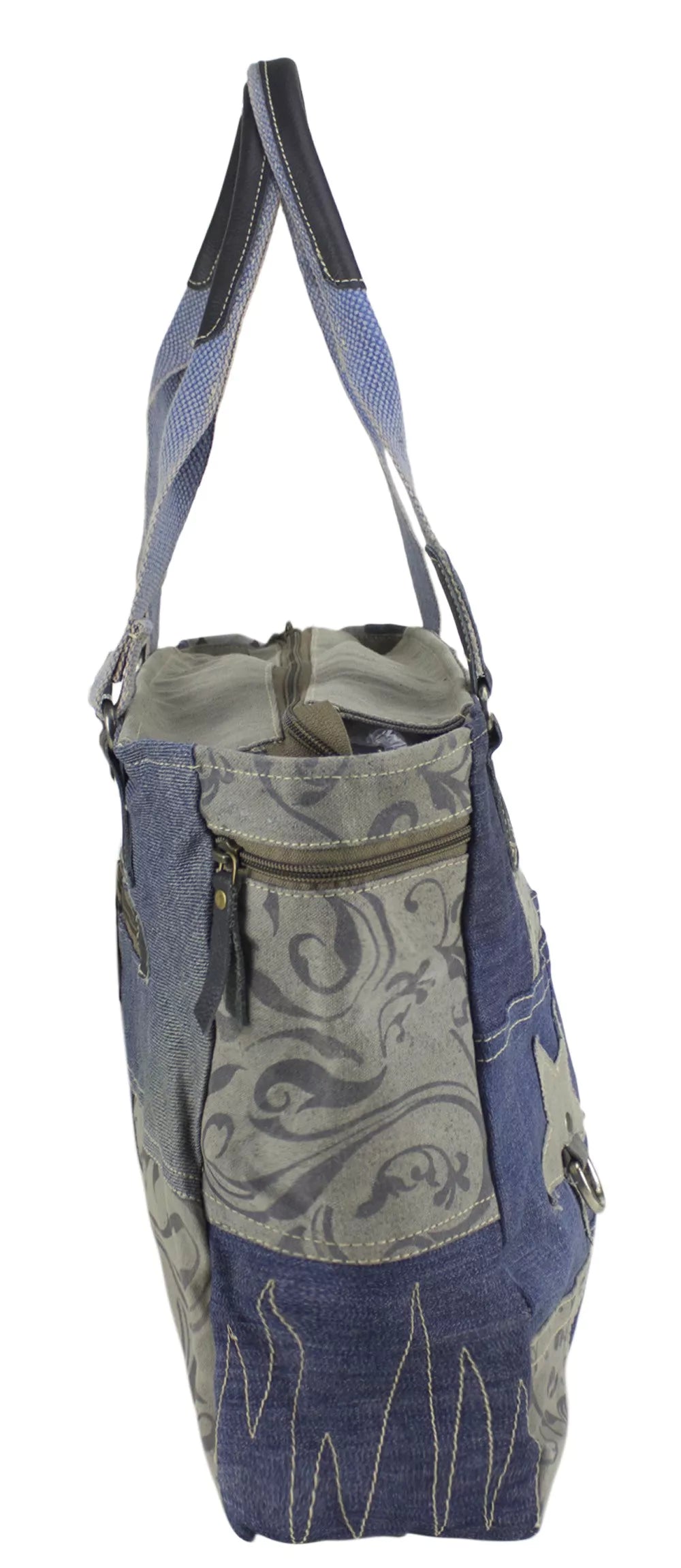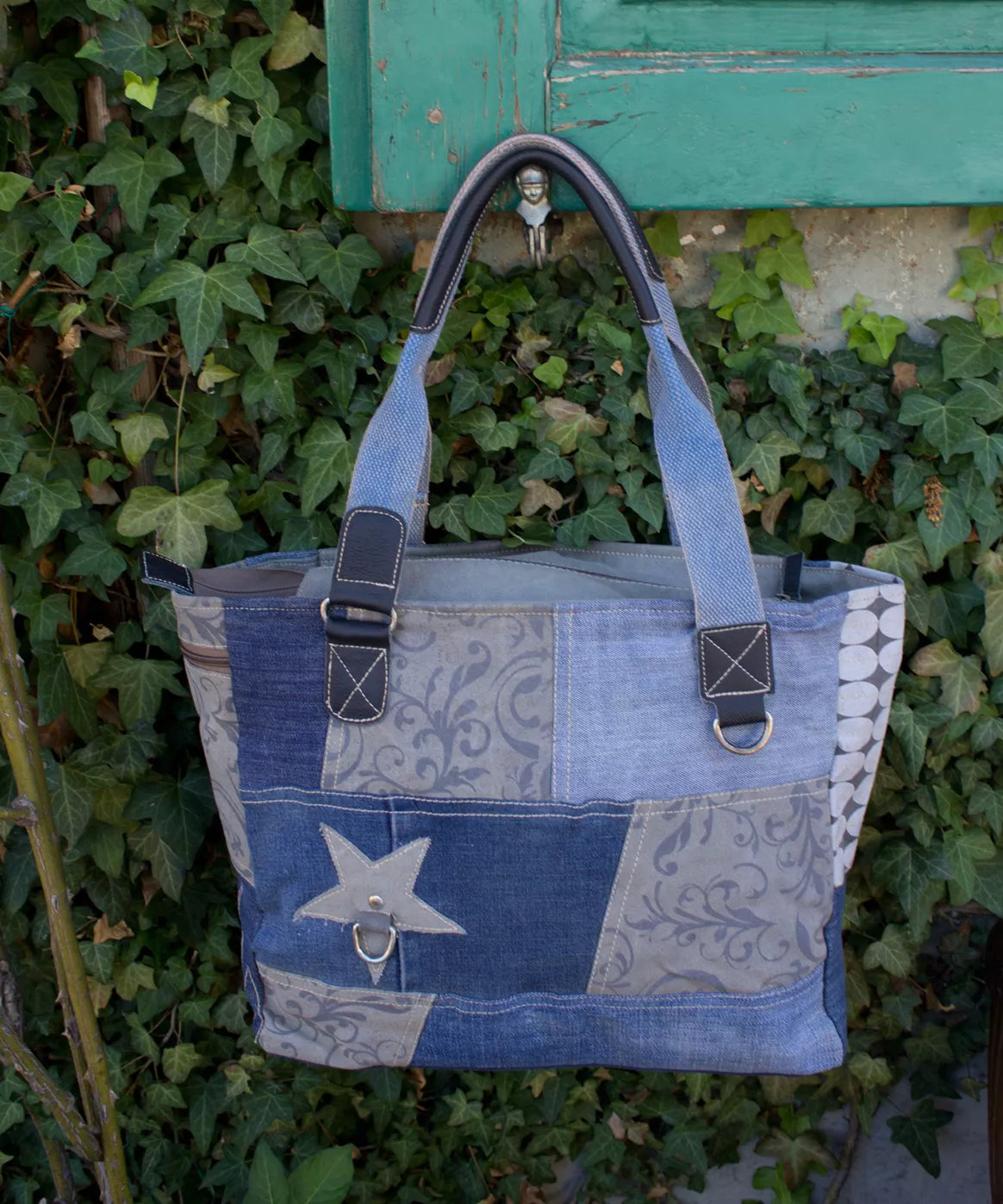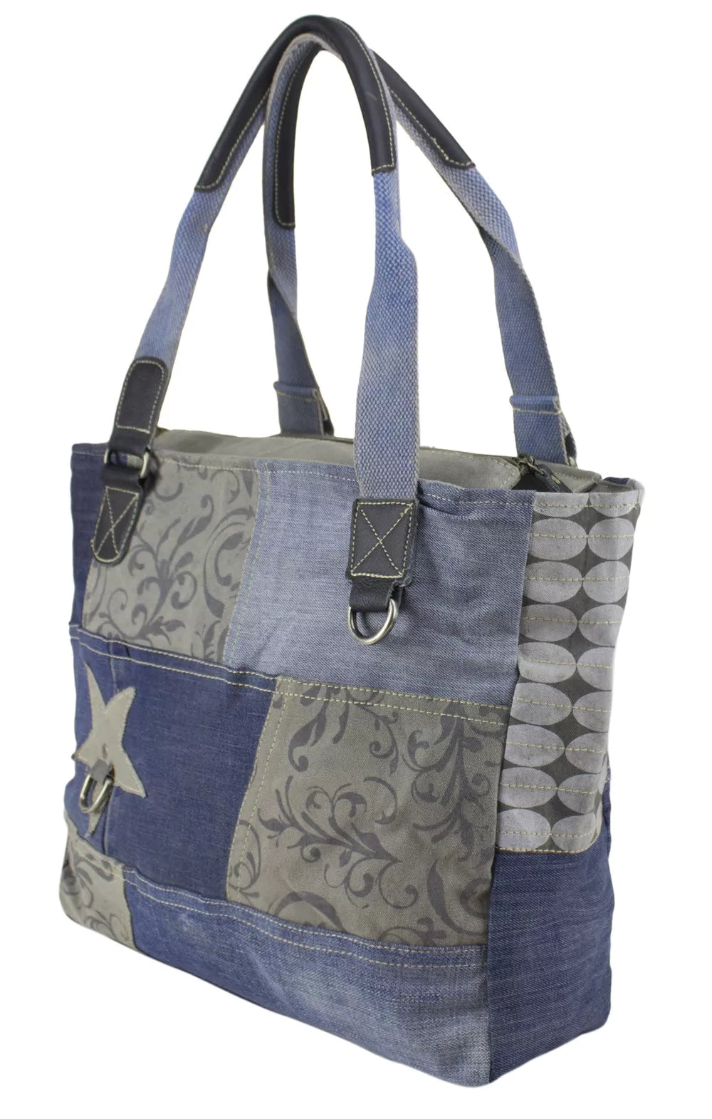 Die Sunsa Damen Handtasche Shopper ist ein Ausdruck von Kreativität und Nachhaltigkeit. Bei Sunsa werden alte Materialien zu einem Teil von etwas Neuem und Einzigartigem. Diese Handtasche besteht aus einer harmonischen Kombination von robustem Canvas und echtem Leder, was ihr nicht nur Stabilität, sondern auch einen authentischen Charme verleiht. Mit Maßen von 39x32x12 cm bietet diese Handtasche ausreichend Platz und ist sogar DIN A4 geeignet, perfekt für Ihre täglichen Bedürfnisse. Sie verfügt über ein Hauptfach und ein Rückfach, beide mit Reißverschlüssen gesichert. Im Inneren finden Sie zusätzlich zwei Einsteckfächer und ein Reißverschlussfach zur einfachen Organisation Ihrer persönlichen Gegenstände. Die Henkel haben eine Höhe von ca. 27 cm, sodass Sie die Schultertasche bequem über der Schulter tragen oder in der Hand halten können. Das besondere Patchwork-Design verleiht dieser Tasche einen einzigartigen Look und macht sie zu einem echten Blickfang. Entdecken Sie den einzigartigen Charme der Sunsa Damen Handtasche Shopper, die nicht nur stilvoll, sondern auch umweltfreundlich ist und Ihnen hilft, Ihren persönlichen Stil auszudrücken.