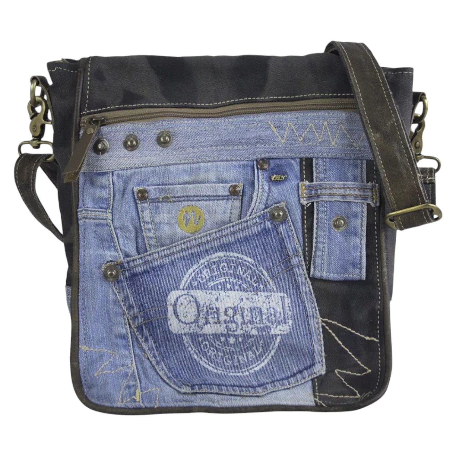 Die Marke Sunsa steht für Einzigartigkeit und Vielfalt, die sich in jedem unserer Designs widerspiegelt. Wir glauben daran, dass alte Materialien zu etwas Neuem werden können, und tragen durch unsere Upcycling-Taschen aktiv dazu bei, Abfall zu reduzieren und Ressourcen zu schonen. Die Sunsa Damen Messenger Tasche ist ein Paradebeispiel für unser Engagement für Nachhaltigkeit und Umweltschutz. Diese stilvolle Umhängetasche besteht aus einer durchdachten Kombination von robustem Canvas, recycelten Jeans und echtem Leder. Mit Abmessungen von ca. 25x27x8 cm ist sie kompakt und dennoch geräumig genug, um Ihre täglichen Notwendigkeiten zu verstauen. Sowohl das Haupt- als auch das Rückfach sind mit Reißverschlüssen gesichert, um Ihre Wertgegenstände zu schützen. Im Inneren finden Sie zwei praktische Einsteckfächer und ein zusätzliches Reißverschlussfach für eine optimale Organisation. Das Reißverschluss-Frontfach bietet zusätzlichen Stauraum für Dinge, die Sie schnell zur Hand haben möchten. Der verstellbare Henkel mit einer Länge von ca. 160 cm ermöglicht es Ihnen, die Tasche bequem an Ihre Bedürfnisse anzupassen.