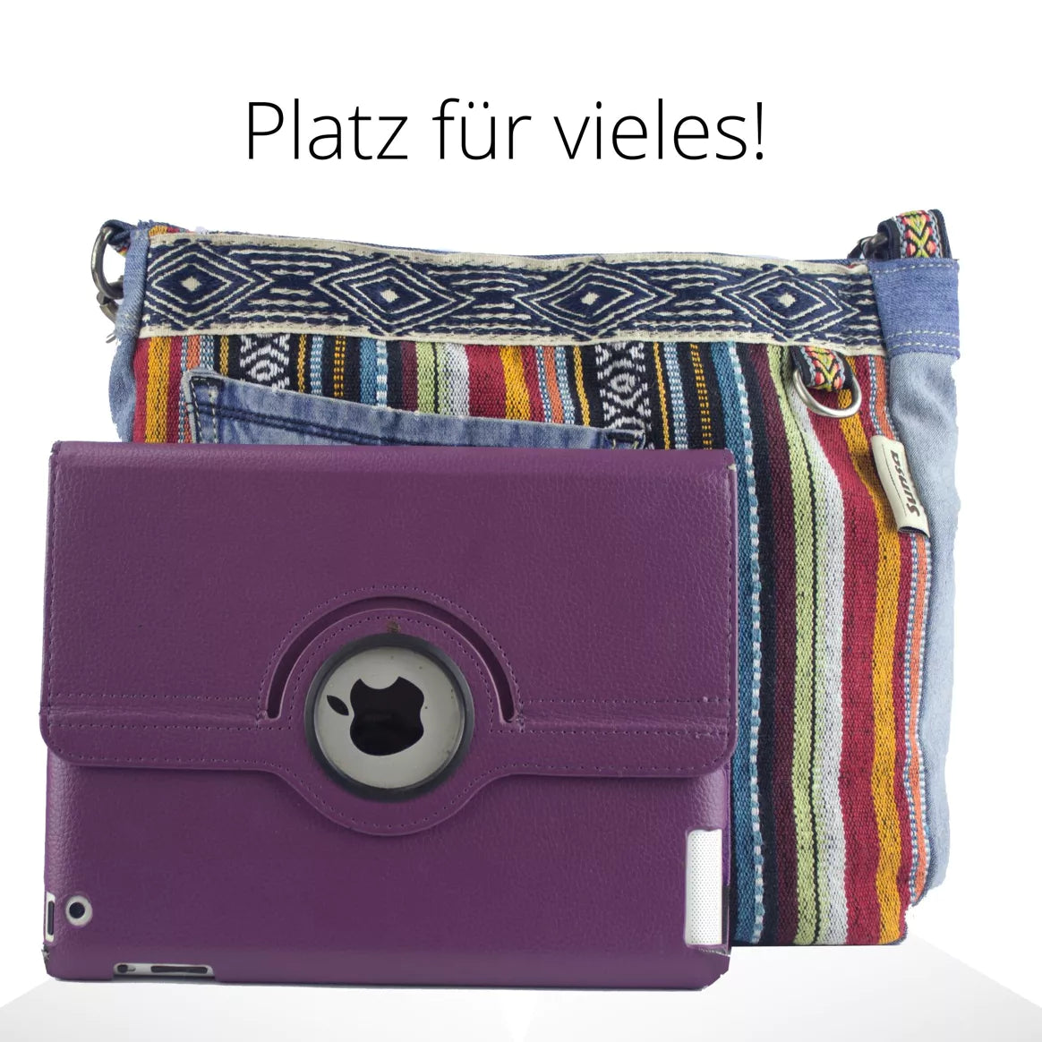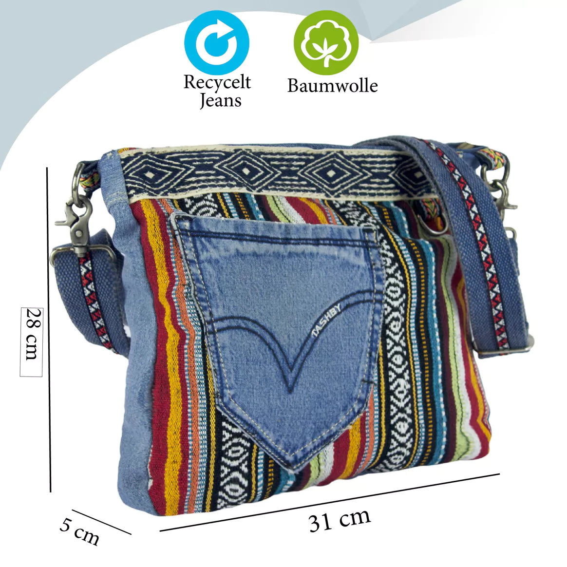 Die Sunsa Damen Umhängetasche ist nicht nur eine stilvolle Ergänzung Ihrer Garderobe, sondern auch ein Statement für Nachhaltigkeit und Einzigartigkeit. Hergestellt aus einer Kombination aus robustem Canvas, recycelten Jeans und echtem Leder, ist diese Tasche nicht nur umweltfreundlich, sondern auch langlebig. Mit Abmessungen von ca. 31x28x5 cm bietet sie ausreichend Platz für Ihre täglichen Essentials. Sie verfügt über ein Hauptfach mit Reißverschluss, ein Rückfach und ein Jeans-Frontfach. Im Inneren befinden sich zwei Einsteckfächer und ein zusätzliches Reißverschlussfach, um Ihre Sachen organisiert zu halten. Die verstellbare Schultergurtlänge von ca. 170 cm ermöglicht es Ihnen, die Tasche nach Ihren Wünschen anzupassen. Ob als Crossbody-Tasche oder Schultertasche, diese Tasche passt sich Ihrem Stil an. Sunsa engagiert sich für Nachhaltigkeit und Umweltschutz. Unsere Upcycling-Produkte tragen dazu bei, Abfall zu reduzieren und Ressourcen zu schonen. Entscheiden Sie sich für ein nachhaltiges Leben mit Sunsa.