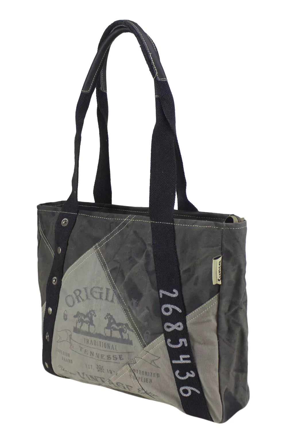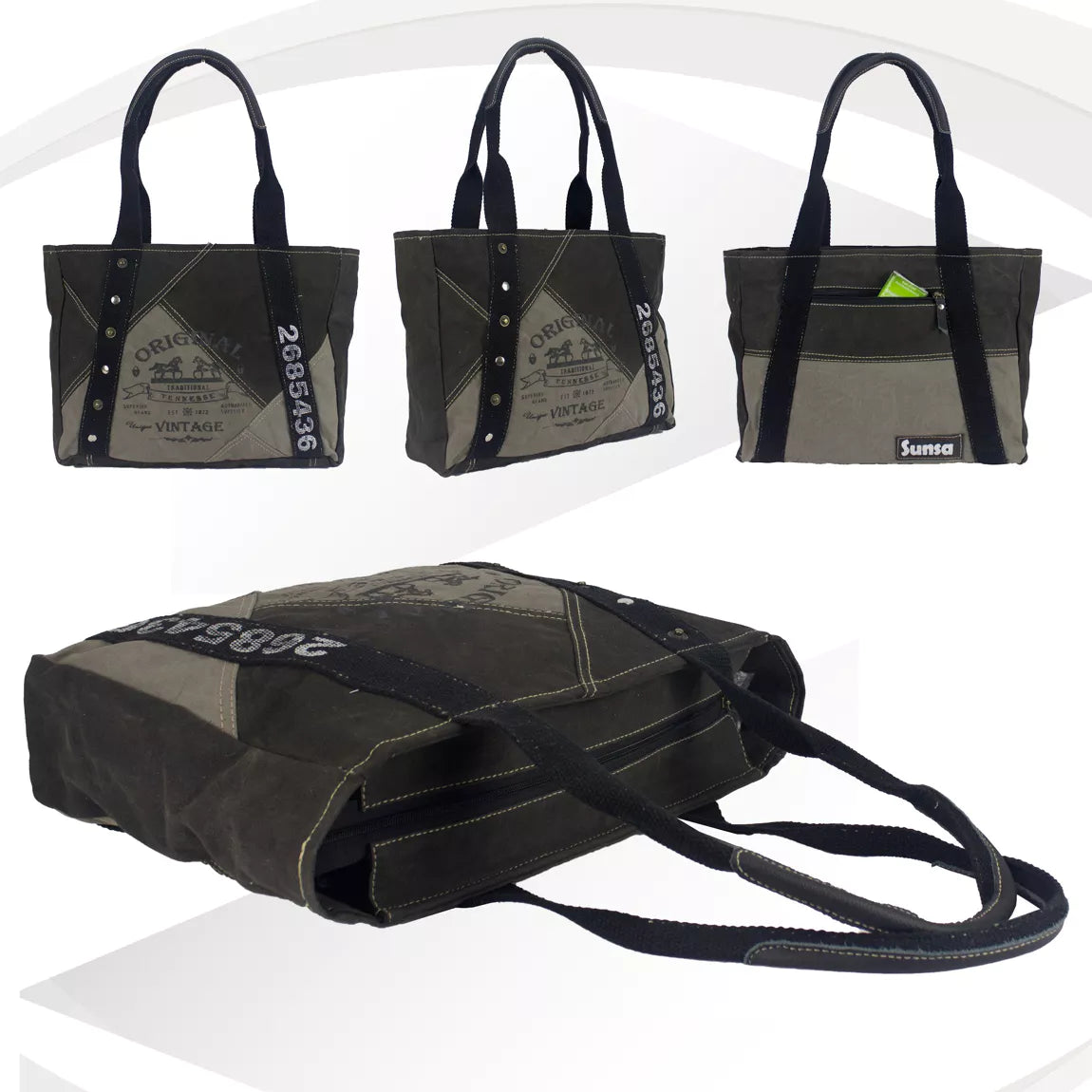 Entdecken Sie die Sunsa Stone Washed Canvas Handtasche – ein einzigartiger Ausdruck von Stil und Nachhaltigkeit. Bei Sunsa werden alte Materialien zu etwas Neuem, und diese Handtasche ist keine Ausnahme. Die Handtasche besteht aus einer Kombination von robustem Canvas und echtem Leder, wodurch sie nicht nur stilvoll, sondern auch langlebig und stabil ist. Die Maße von 39x30x10 cm machen sie ideal für DIN A4-Formate. Praktisch und sicher sind jeweils ein Reißverschluss am Haupt- und Rückfach vorhanden. Im Inneren bieten zwei Einsteckfächer und ein zusätzliches Reißverschlussfach optimale Organisation. Die Griffe mit einer Länge von ca. 70 cm ermöglichen ein bequemes Tragen über der Schulter oder in der Hand. Die besondere Note dieser Schultertasche kommt durch den einzigartigen Aufdruck, der ihr einen individuellen Look verleiht. Stilvoll, funktional und nachhaltig – die Sunsa Stone Washed Canvas Handtasche ist mehr als nur eine Tasche; sie ist ein Statement für Umweltbewusstsein und persönlichen Stil.