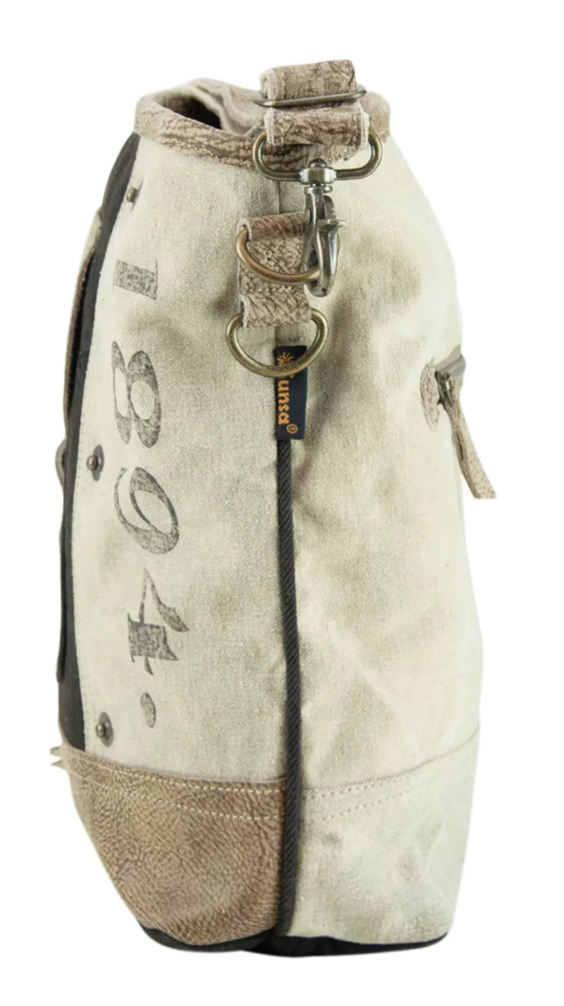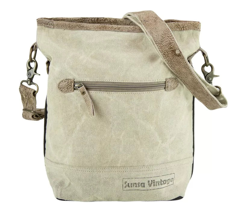 Die Sunsa Vintage Umhängetasche ist eine Kombination aus Stil, Nachhaltigkeit und Praktikabilität. Hergestellt aus stabilem Canvas (Leinwand) und echtem Leder, sind Sunsa Taschen aus neuen und recycelten Materialien gefertigt, darunter Canvas, Segeltuch, alte Militärzelte und Lederreste. Ein Statement für die Umwelt! Mit Abmessungen von ca. 32x32x10,5 cm bietet diese Umhängetasche ausreichend Platz für Ihre persönlichen Gegenstände. Der verstellbare Henkel aus Leder/Canvas hat eine Länge von ca. 150 cm, was es Ihnen ermöglicht, die Tasche bequem anzupassen. Die Tasche ist gut strukturiert und verfügt über Reißverschlüsse an Haupt-, Rück- und Innenfach sowie zwei innere Einsteckfächer. Ein zusätzliches Einsteckfach befindet sich an der Vorderseite. Diese Sunsa Vintage Damentasche ist praktisch, robust, ein Unikat und gleichzeitig schick. Die Canvas Crossover Bag passt perfekt zu jedem Anlass und ist ein Must-Have für stilbewusste Frauen. Die Pflege dieser Tasche ist unkompliziert, da Verschmutzungen einfach mit lauwarmem Wasser und milder Seife entfernt werden können. Bitte verwenden Sie keine Waschmaschine oder Trockner, um die Tasche zu reinigen. Genießen Sie das trendige deutsche Design, die individuellen Modelle, die Top-Qualität und die schnelle Lieferung, die Sunsa bietet. Unser engagiertes Team steht Ihnen gerne zur Verfügung.