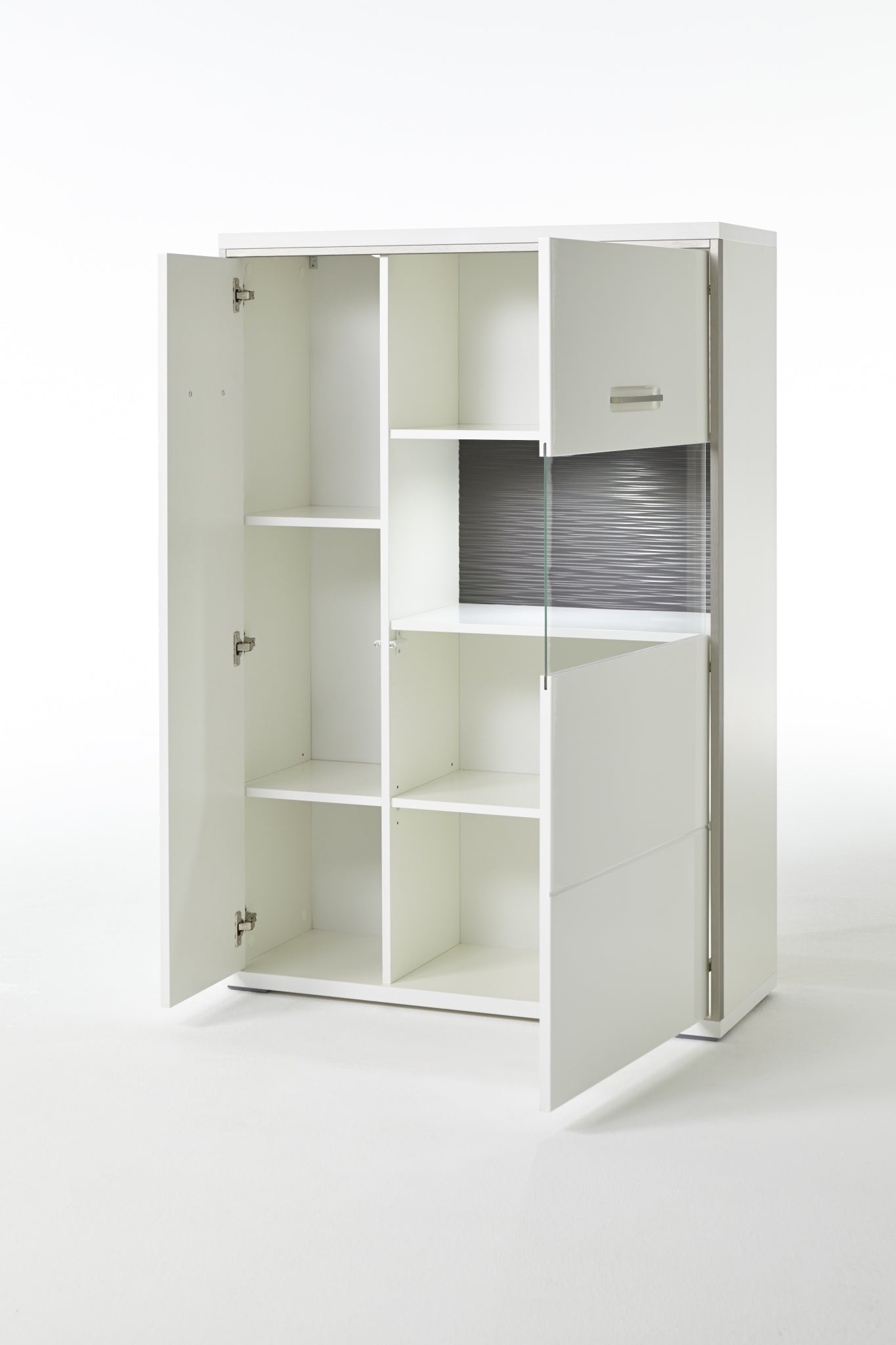 - Rückwände: hinter Türen weiß NB hinter Glas grau 3D Optik NB