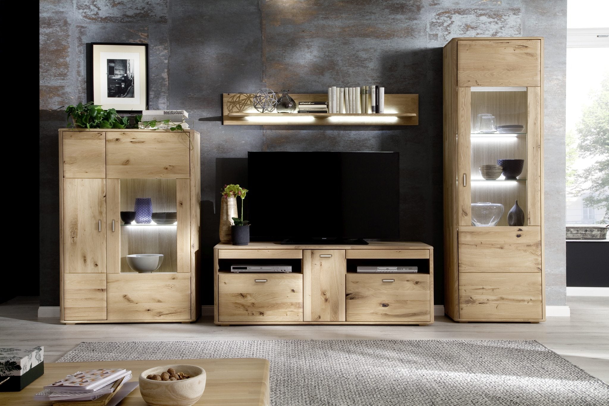 - 2 Türen / 1 Tür mit Glas / 2 Schubkästen