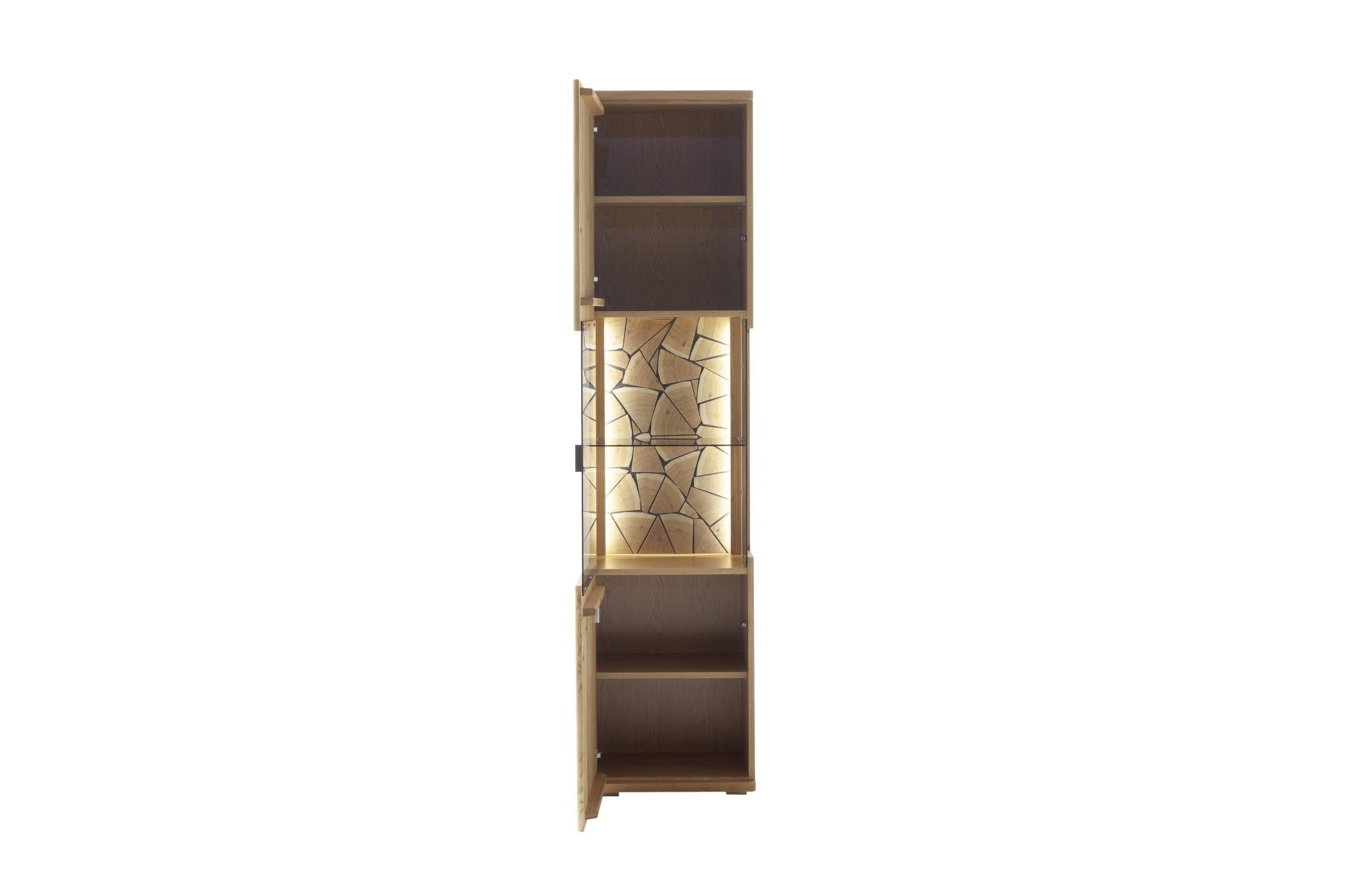 - Rückwand: sichtbar: Scheitholz hinter Türen: Eiche Dekor